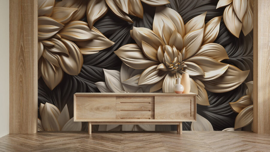 S touto úžasnou nástennou maľbou premeníte akýkoľvek priestor na kvetinovú krajinu snov. Predstavte si, že vstúpite do sveta nadrozmerných kvetov, ktorých ladné krivky vyskakujú zo steny a vyzývajú k obdivu z každého uhla. Je to ako záhradná párty priamo vo vašej obývačke, bez všetkej špiny a peľu. Táto nástenná maľba, ideálna pre útulný čitateľský kútik alebo živú jedáleň, dodáva miestnosti hĺbku a nadčasový šarm. Predstavte si, že popíjate kávu obklopení takouto krásou a každý deň sa cítite o niečo inšpiratívnejší. Akoby vám príroda pošepkala: “Tu máš kúsok elegancie”. Ideálne pre každého, kto chce pozdvihnúť úroveň svojho interiéru bez toho, aby prerobil peniaze.