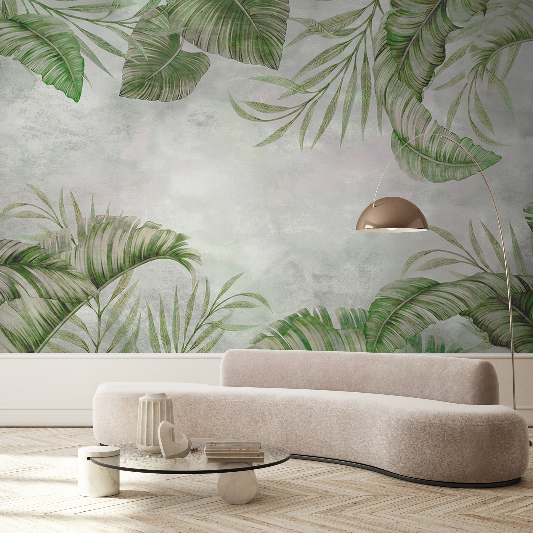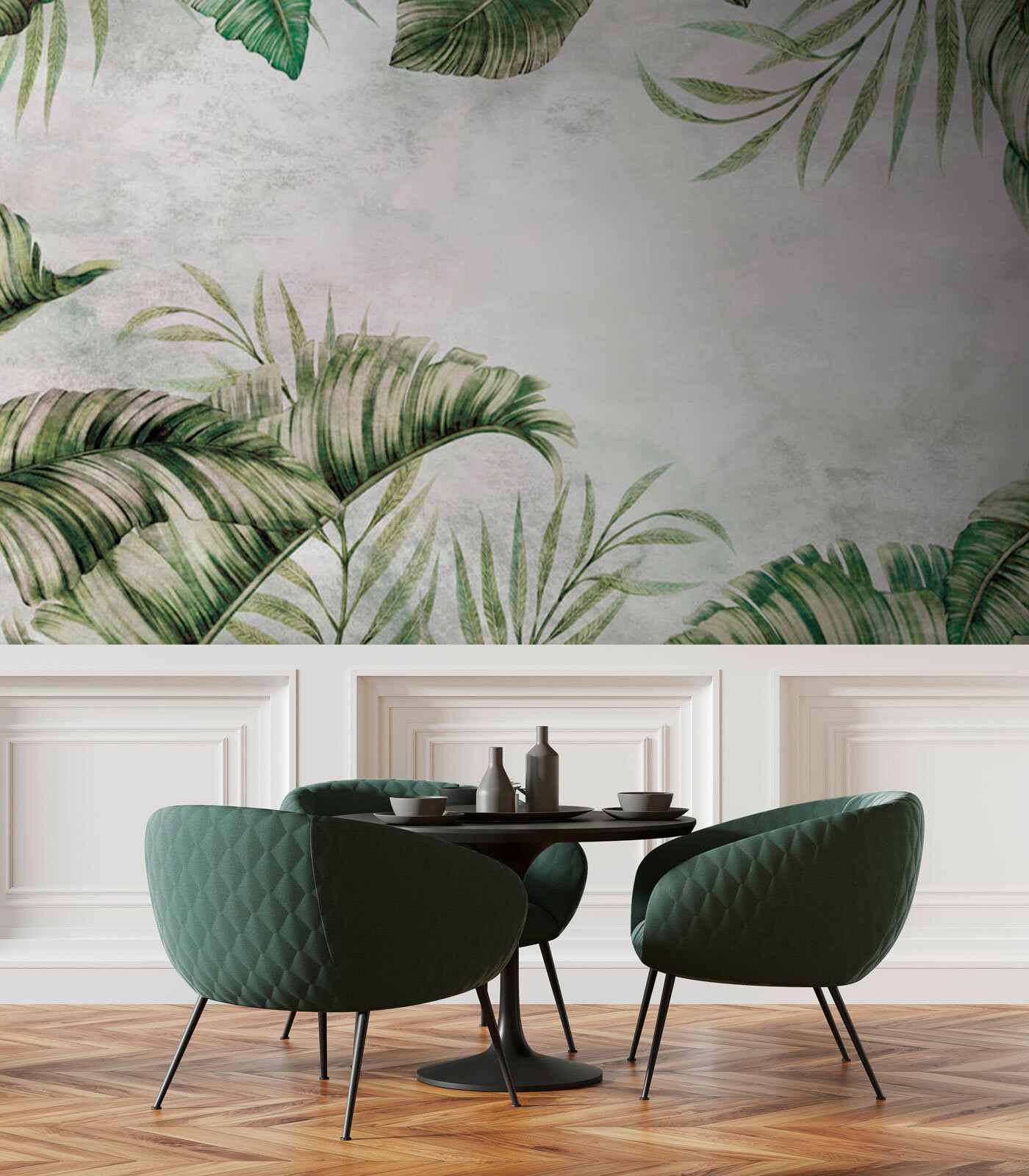 Predstavte si to vo svojej obývačke: pokojné rána so šálkou kávy, pri ktorých sa budete cítiť ako v tropickom raji. Alebo možno vo vašej pracovni, ktorá vám dodá tú správnu relaxačnú atmosféru, ktorá podporí vašu kreativitu. Jemná zelená a mäkká biela sú príjemné na pohľad a ponúkajú upokojujúci efekt. Dokonca aj vaši hostia budú presvedčení, že máte niekde ukrytú tajnú zenovú záhradu.
