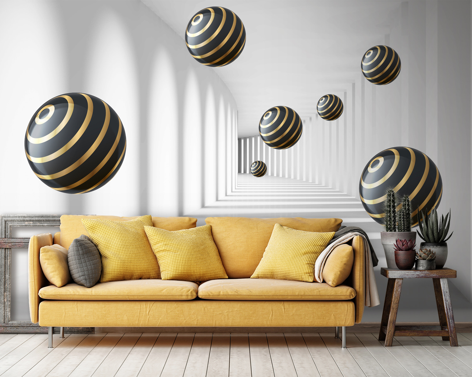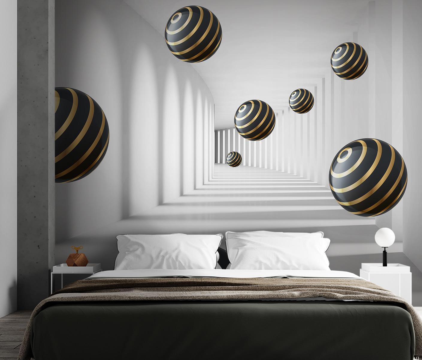 Predstavte si, že vojdete do miestnosti a máte pocit, že ste vstúpili priamo do inej dimenzie. Presne to dokáže nástenná maľba “Pruhované gule vznášajúce sa v bielej chodbe”. Je to tento moderný, takmer hypnotický dizajn, vďaka ktorému sa budete cítiť ako vo futuristickom tuneli. Gule s elegantnými pruhmi sa akoby bez námahy vznášajú a vytvárajú pocit hĺbky, vďaka čomu sa váš priestor môže skutočne zdať väčší. Je to ako mať vlastnú malú kulisu zo sci-fi filmu priamo na stene!