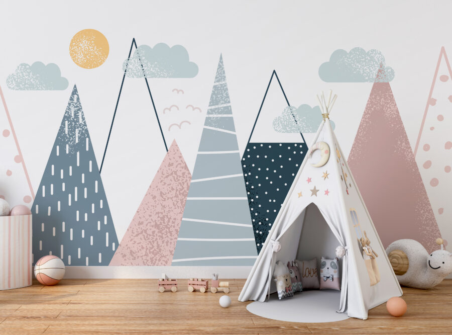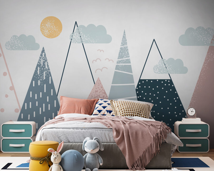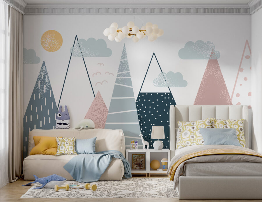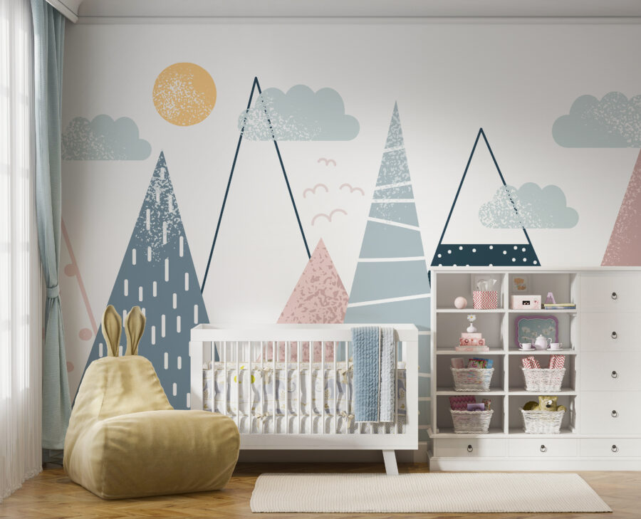 Vneste do interiéru nádherný obraz s geometrickými horami pod jasnou oblohou osvetlenou slnkom. Je to ako mini dovolenka na stenách, ideálna na rozvíjanie fantázie v detských izbách alebo herniach. Vďaka týmto jemným farbám v kombinácii s rozmarnými vzormi je skutočne očarujúca. Predstavte si, ako sa dieťatko ukladá do spánku a sníva o horských dobrodružstvách alebo oblakoch, ktoré mu šepkajú príbehy – sladké, však? Navyše je to rýchly spôsob, ako bez veľkého rozruchu oživiť akýkoľvek priestor. Steny sa možno dokonca trochu začervenajú! Vážne, táto nástenná maľba má v sebe napísané kúzlo.