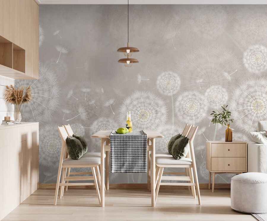 Predstavte si, že sa každé ráno zobudíte do miestnosti, ktorá je ako jemné snenie a vo vzduchu tancujú semienka púpavy. “Nástenné maľby Púpavy tancujúce vo vánku” sú pokojným majstrovským dielom, ktoré zachytáva ten jemný okamih, keď sa zdvihne vánok a odnesie tieto nadýchané semienka na rozmarnú cestu. Ideálne pre každého, kto miluje dotyk prírody vo svojom domove – je to ako preniesť vonkajší svet dovnútra bez neporiadku v podobe skutočného peľu. Navyše pri každom pohľade naň sa vo vás prebudí sladká nostalgia za detskými letami, keď ste si priali púpavy. Je to ako malý závan čerstvého vzduchu pre vaše steny.