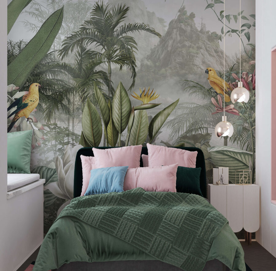 Vstúpte do pulzujúceho sveta s touto nástennou maľbou v tropickom raji, kde farebné vtáky poletujú medzi sviežou zeleňou. Je to ako preniesť si kúsok džungle priamo do svojho domova. Predstavte si, že sa zobudíte do slnečného rána, obklopí vás jemné šumenie prírody a tento farebný šum na stenách všetko len rozjasní. Každý detail priťahuje pozornosť, čím sa stáva skvelým podnetom na konverzáciu. Táto nástenná maľba je ideálna pre útulný čitateľský kútik alebo živý obytný priestor, premení každú miestnosť na útočisko. Tak čo vám bráni? Je čas na zábavné dekoratívne kúzlo!