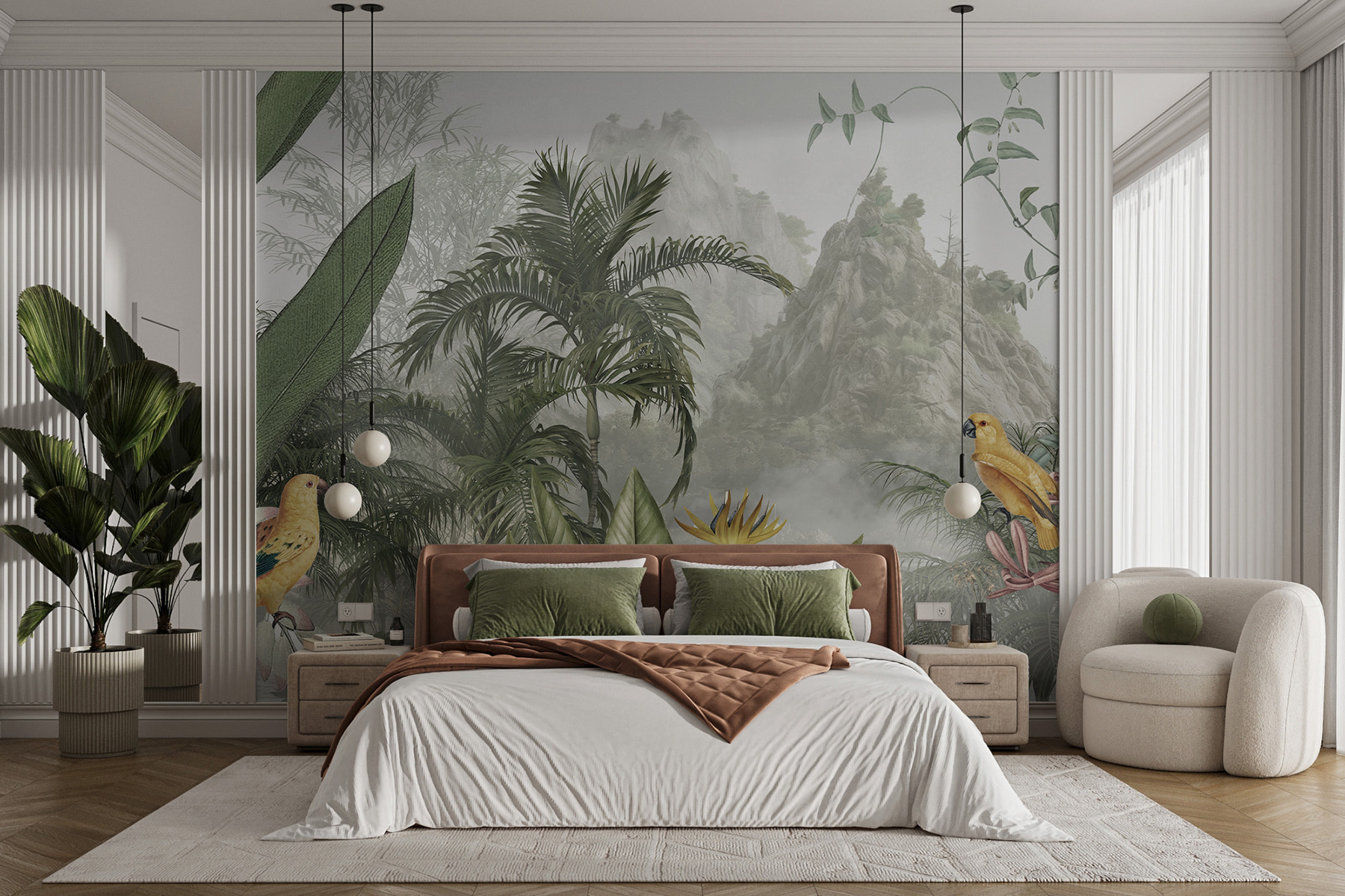 Vstúpte do pulzujúceho sveta s touto nástennou maľbou v tropickom raji, kde farebné vtáky poletujú medzi sviežou zeleňou. Je to ako preniesť si kúsok džungle priamo do svojho domova. Predstavte si, že sa zobudíte do slnečného rána, obklopí vás jemné šumenie prírody a tento farebný šum na stenách všetko len rozjasní. Každý detail priťahuje pozornosť, čím sa stáva skvelým podnetom na konverzáciu. Táto nástenná maľba je ideálna pre útulný čitateľský kútik alebo živý obytný priestor, premení každú miestnosť na útočisko. Tak čo vám bráni? Je čas na zábavné dekoratívne kúzlo!