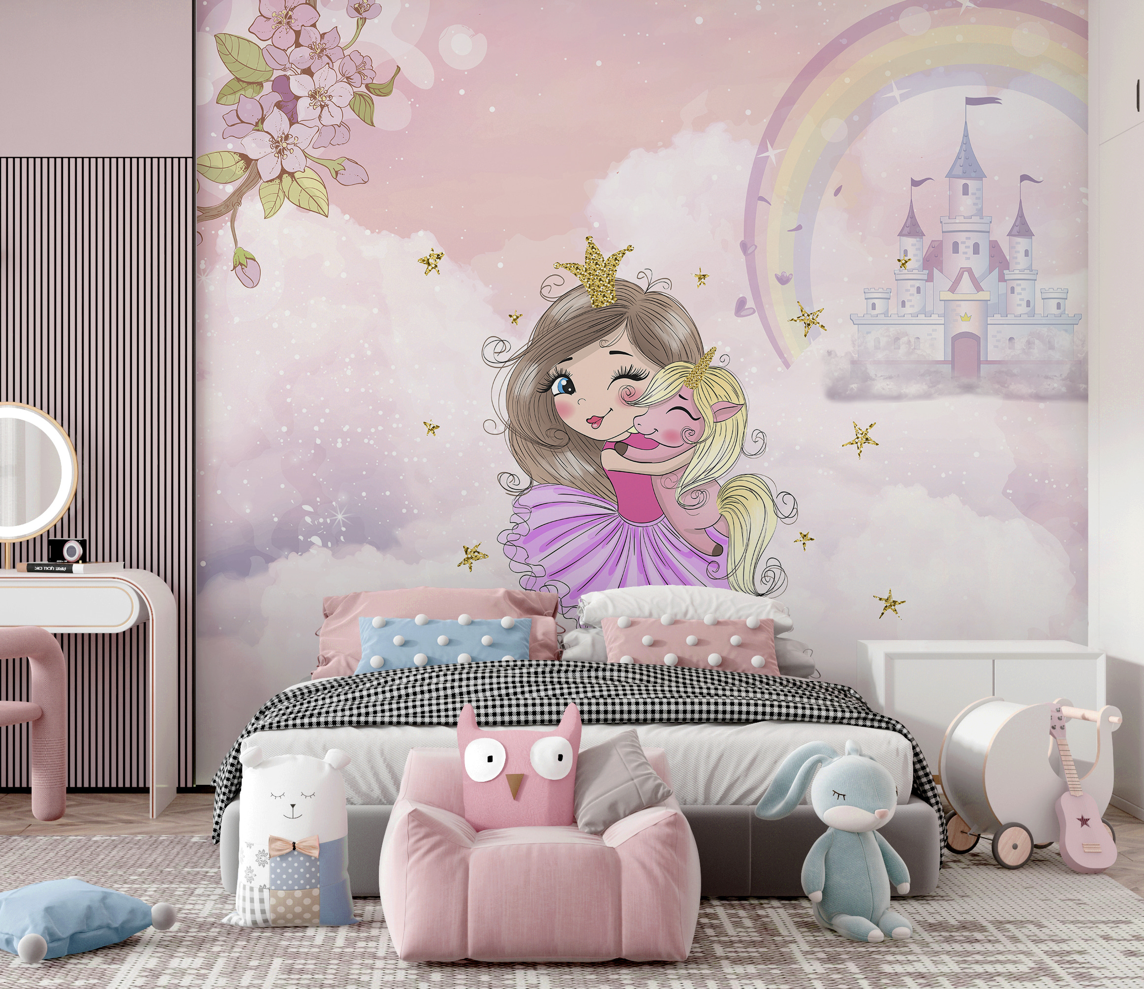 Táto nástenná maľba je čarovná pre každú detskú izbu! Predstavte si scénu ako z rozprávky: sladké dievčatko, ktoré srdečne objíma najchlpatejšieho jednorožca. Pastelové farby, trblietajúce sa hviezdy a ten zasnený zámok pod dúhou – úprimne, je to ako vstúpiť do rozprávkovej knihy. Ideálne na vyvolanie úsmevu a nekonečného snívania. Navyše dodáva miestnosti jemnú, nežnú atmosféru, ktorá je jednoducho očarujúca. Len si predstavte, ako sa vaše dieťatko každý deň prebúdza do tejto rozmarnej krajiny zázrakov – určite sa vďaka nej stanú rána o niečo čarovnejšími.