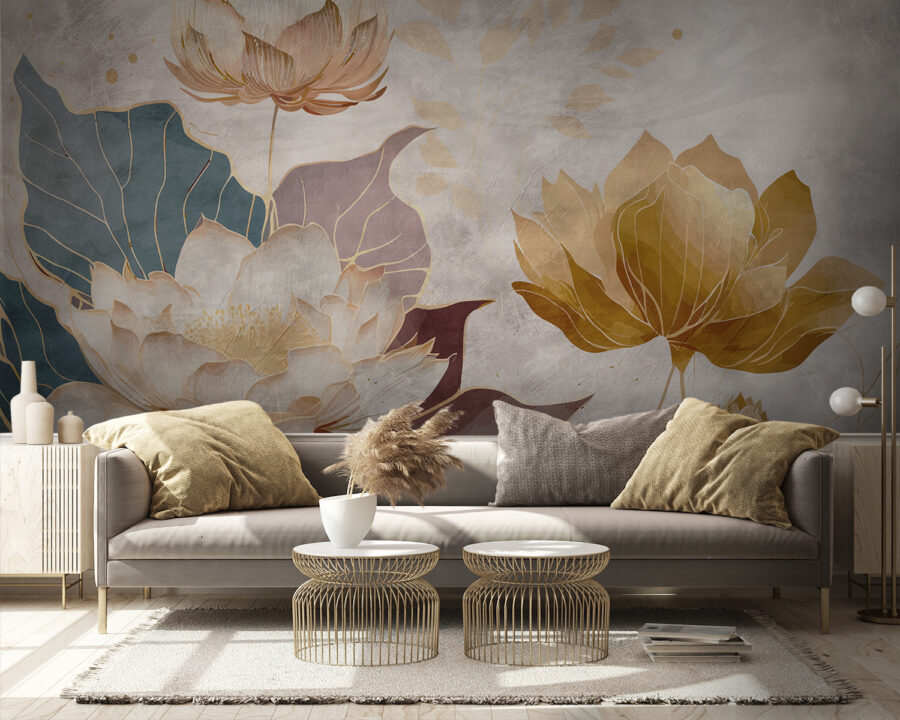 Premeňte svoj priestor pomocou podmanivého kúzla tejto nástennej maľby s elegantnými lotosovými kvetmi v jemných odtieňoch. Predstavte si, že vstúpite do miestnosti, kde tieto krásne kvety tancujú po stene a prinášajú pocit pokoja a vyrovnanosti. Je to ako mať krásnu záhradu priamo vo svojej obývačke – bez špiny a otravného hmyzu. Jemné farby vytvárajú upokojujúcu kulisu, ktorá je ideálna na to, aby ste sa mohli schúliť s dobrou knihou alebo si vychutnať pokojnú šálku čaju. Možno sa vám dokonca bude zdať, že sa zasnívate, keď sa budete kochať tou krásou. Táto nástenná maľba nie je len dekoráciou, ale pozvánkou na oddych. Či už ide o útulné zákutie, alebo miesto na živú párty, toto umelecké dielo bez námahy pozdvihne atmosféru. Tak prečo nenechať tieto pôvabné kvety v centre pozornosti? Vaše steny si zaslúžia trochu lásky, však?