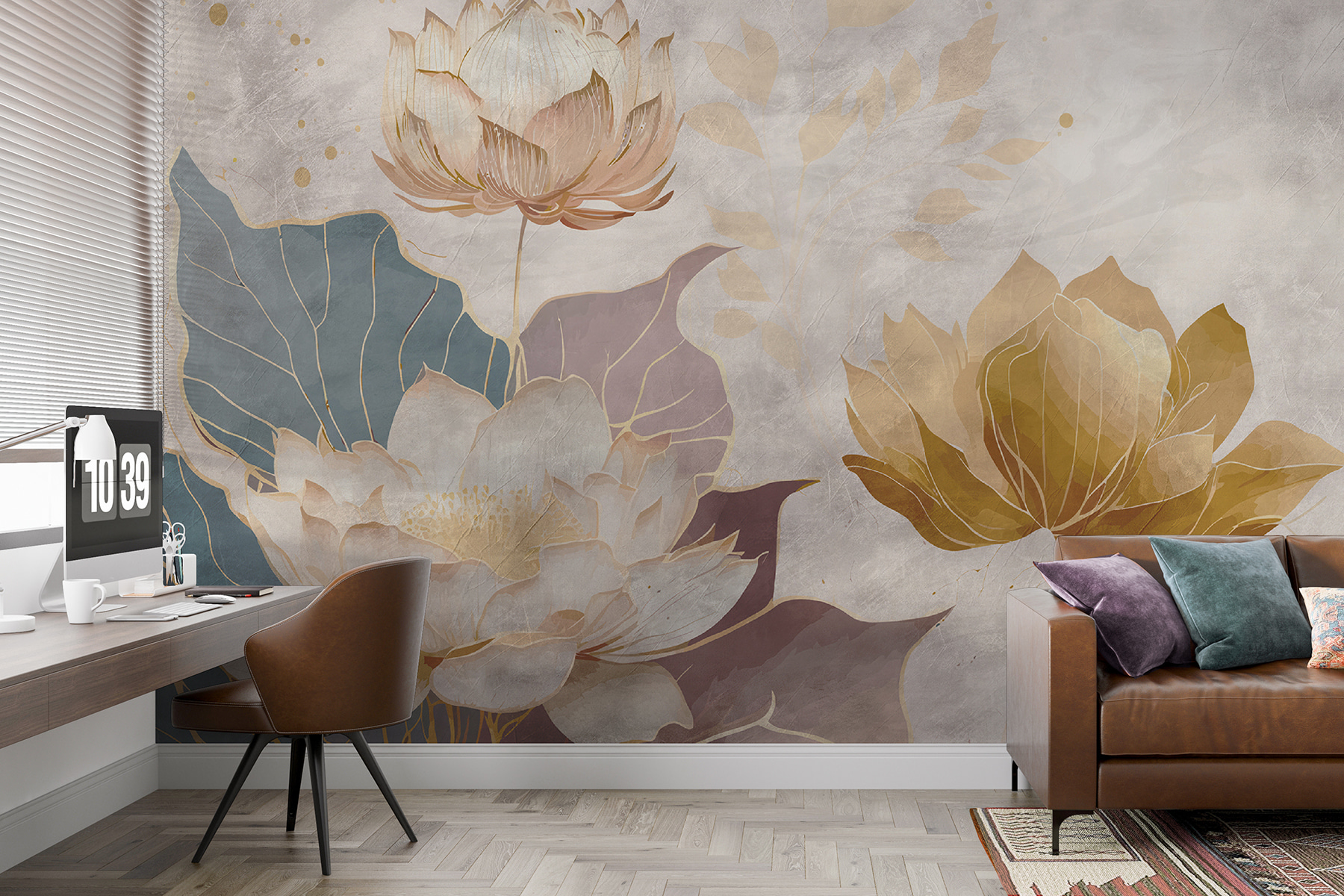 Premeňte svoj priestor pomocou podmanivého kúzla tejto nástennej maľby s elegantnými lotosovými kvetmi v jemných odtieňoch. Predstavte si, že vstúpite do miestnosti, kde tieto krásne kvety tancujú po stene a prinášajú pocit pokoja a vyrovnanosti. Je to ako mať krásnu záhradu priamo vo svojej obývačke – bez špiny a otravného hmyzu. Jemné farby vytvárajú upokojujúcu kulisu, ktorá je ideálna na to, aby ste sa mohli schúliť s dobrou knihou alebo si vychutnať pokojnú šálku čaju. Možno sa vám dokonca bude zdať, že sa zasnívate, keď sa budete kochať tou krásou. Táto nástenná maľba nie je len dekoráciou, ale pozvánkou na oddych. Či už ide o útulné zákutie, alebo miesto na živú párty, toto umelecké dielo bez námahy pozdvihne atmosféru. Tak prečo nenechať tieto pôvabné kvety v centre pozornosti? Vaše steny si zaslúžia trochu lásky, však?