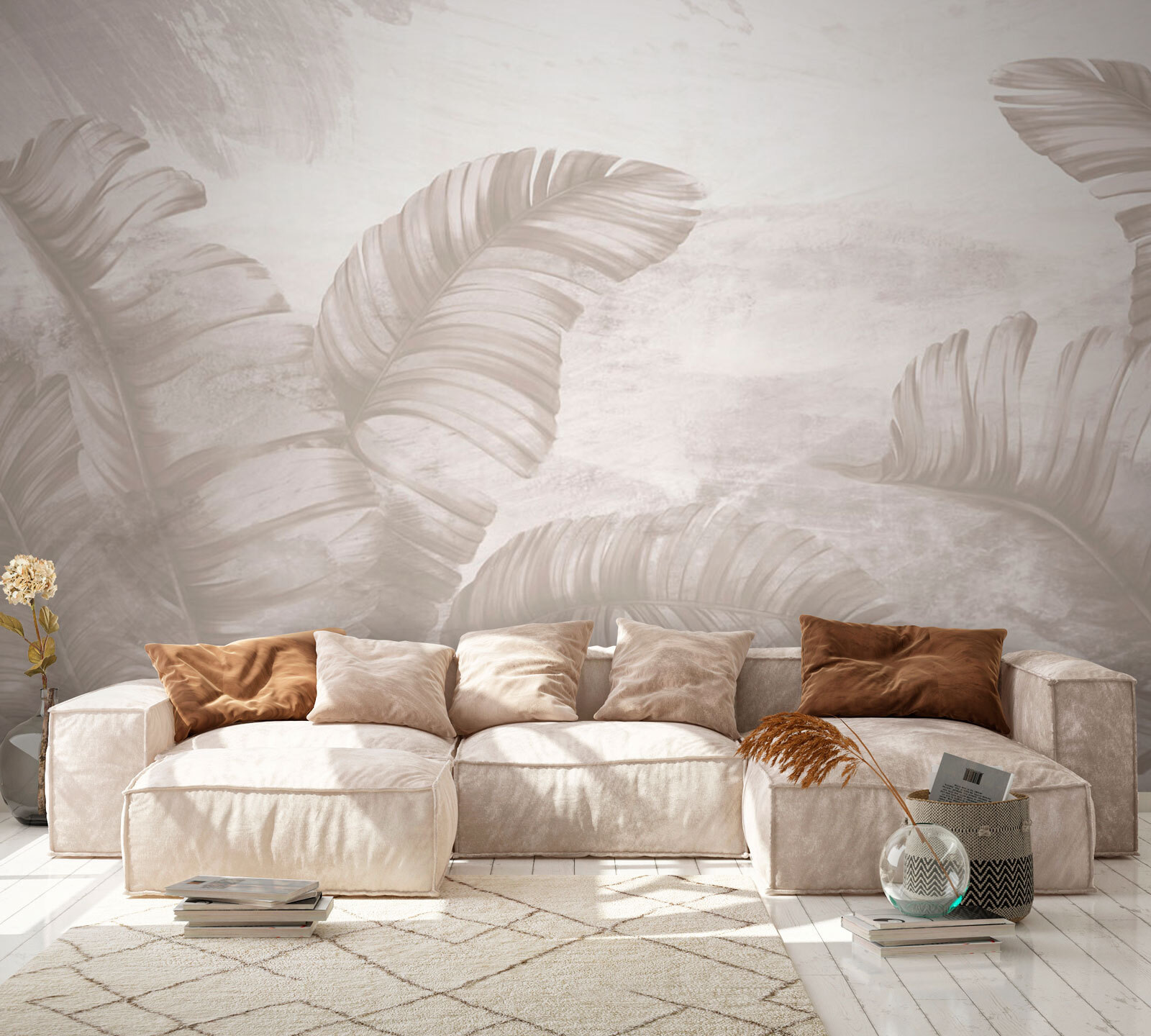 Premeňte akúkoľvek miestnosť na pokojné útočisko pomocou tejto úžasnej nástennej maľby, ktorá zachytáva jemnú eleganciu a pôvab prírody. Predstavte si, že pri každej prechádzke vstúpite do pokojného lesa. Jemné tóny a ladne sa kývajúce listy prinášajú pocit pokoja ako jemný vánok počas teplého popoludnia. Ideálne sa hodí do útulných čitateľských kútikov alebo svetlých obývacích izieb a pozýva vás k odpočinku. Priatelia sa možno dokonca opýtajú, kde je vaša tajná záhrada! S touto nástennou maľbou sa každý pohľad zdá byť ako mini dovolenka – kto by to nechcel? Malý kúsok prírody vo vašom dome? Áno, prosím!