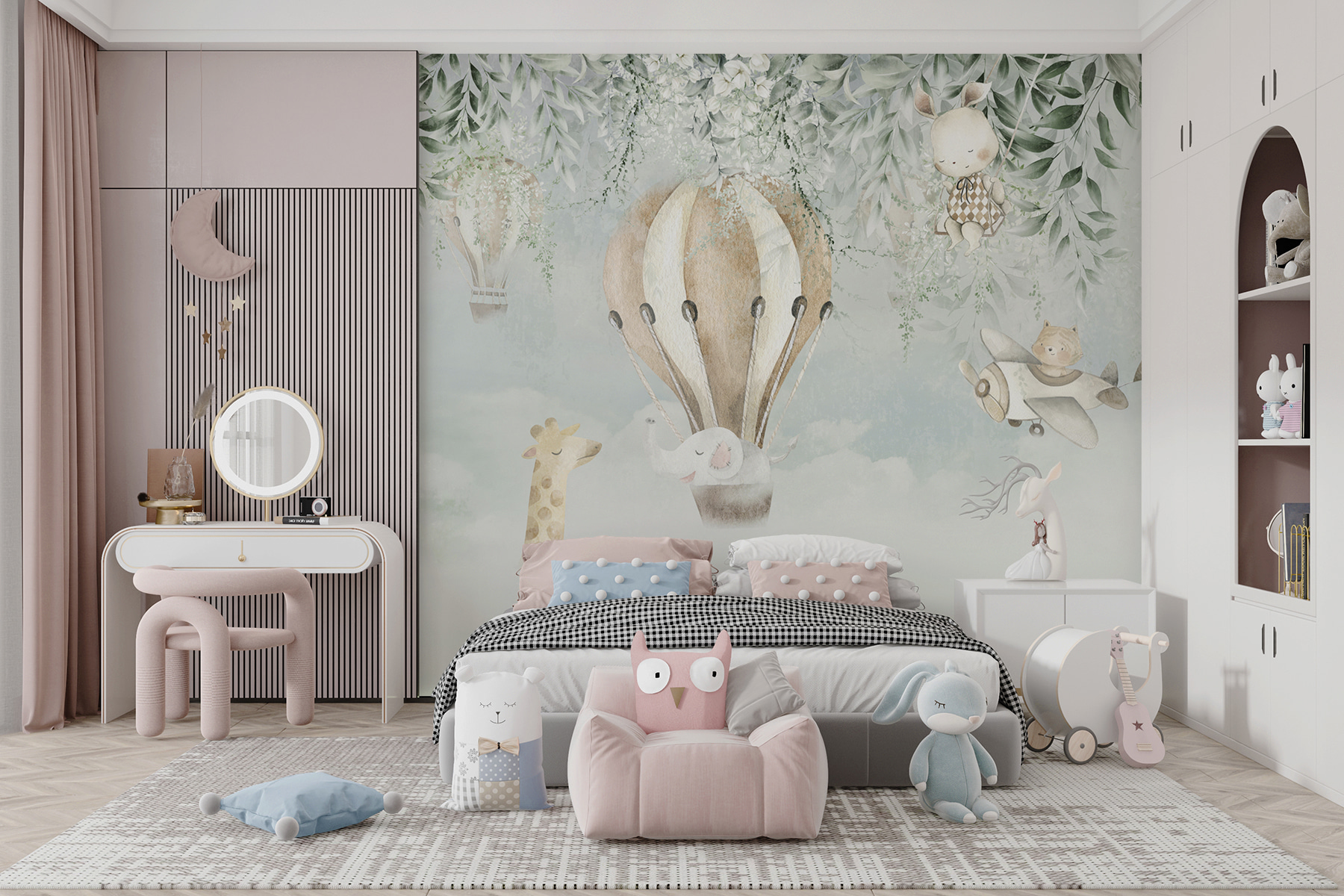 Snívali ste niekedy o tom, že do detskej izby prinesiete rozmarnú, snovú scénu? Táto nástenná maľba “Zajačik na hojdačke” to určite dokáže. Predstavte si, ako sa vášmu drobcovi rozžiaria oči, keď zbadá rozkošného zajačika, ktorý sa jemne hojdá medzi jemnou zeleňou a očarujúcimi drobnými detailmi. Je tu dokonca aj teplovzdušný balón a ďalšie rozkošné postavičky!