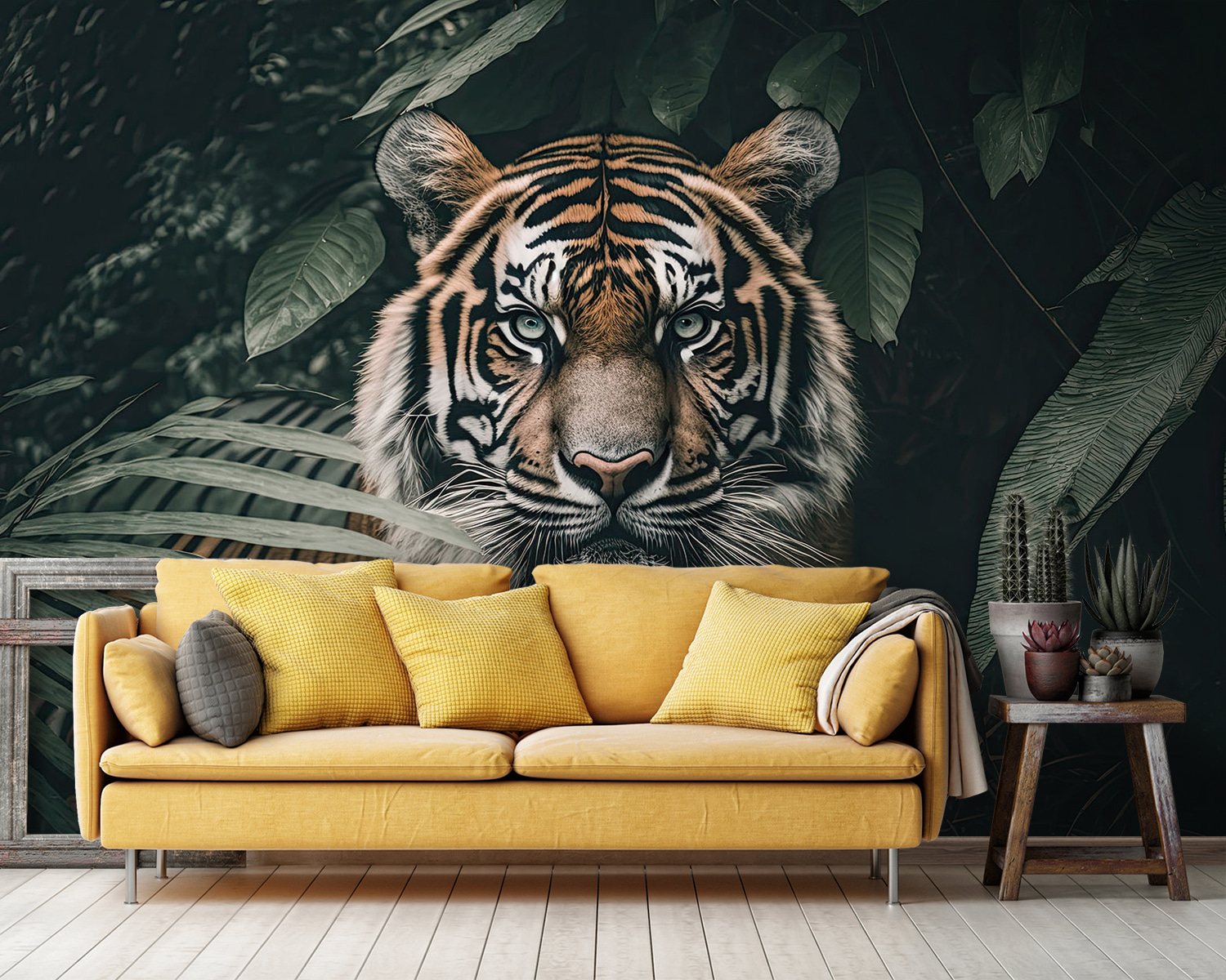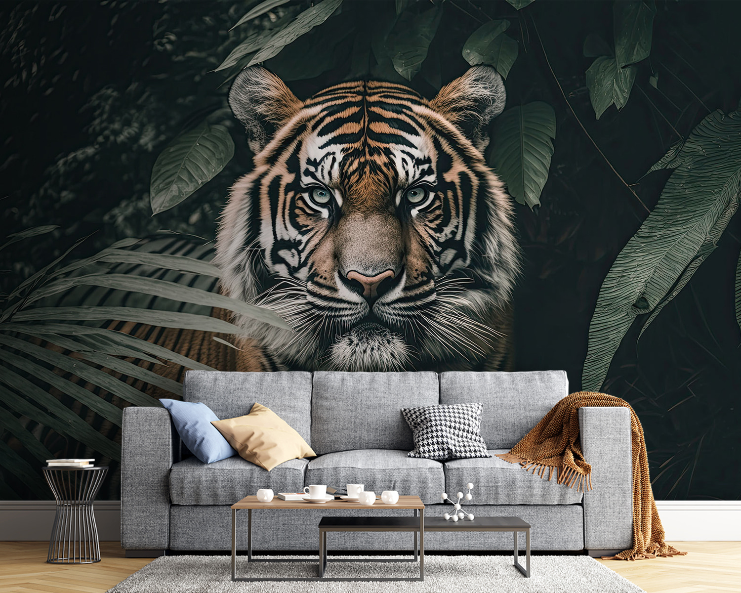 Premeňte svoj priestor pomocou tejto ohromujúcej nástennej maľby s tigrom, ktorý sa prediera cez bujné lístie džungle. Je to ako divoké dobrodružstvo priamo u vás doma! Predstavte si, že vojdete do miestnosti, kde na vás toto majestátne stvorenie akoby dozeralo a vyvoláva vo vás pocit úžasu a malého vzrušenia. Vďaka hlbokej zelenej a výraznej oranžovej farbe je ideálny na akúkoľvek stenu – premení všedný priestor na exotickú oázu. Predstavte si útulné večery, popíjanie čaju a zároveň pocit, že ste vstúpili do objatia prírody. Táto nástenná maľba nie je len dekoráciou, ale rozpráva príbeh a vyzýva každého návštevníka, aby sa zastavil a vstrebal ho. Ideálna pre tých, ktorí radi utekajú pred všednosťou!