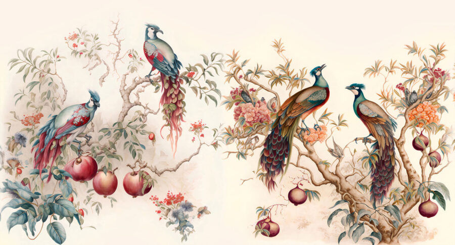 Premeňte svoj priestor pomocou tejto ohromujúcej nástennej maľby so žiarivými pávmi elegantne sediacimi na sviežich stromoch. Predstavte si, že pri každom vstupe do miestnosti vstúpite do rozmarnej záhrady. Výrazné farby a zložité detaily dodávajú obrazom osobitosť, takže sú viac než len dekoráciou – sú podnetom na rozhovor. Priatelia sa vás môžu spýtať, či si tajne pestujete zelený palec alebo skúmate svet umenia. Predstavte si útulné večery s mäkkým svetlom odrážajúcim sa od nástennej maľby, ktoré nabáda k odpočinku a inšpirácii. Je to takmer akoby pávy čakali, aby sa mohli pridať k vášmu ďalšiemu dobrodružstvu. Kto by nechcel žiť medzi takouto krásou?