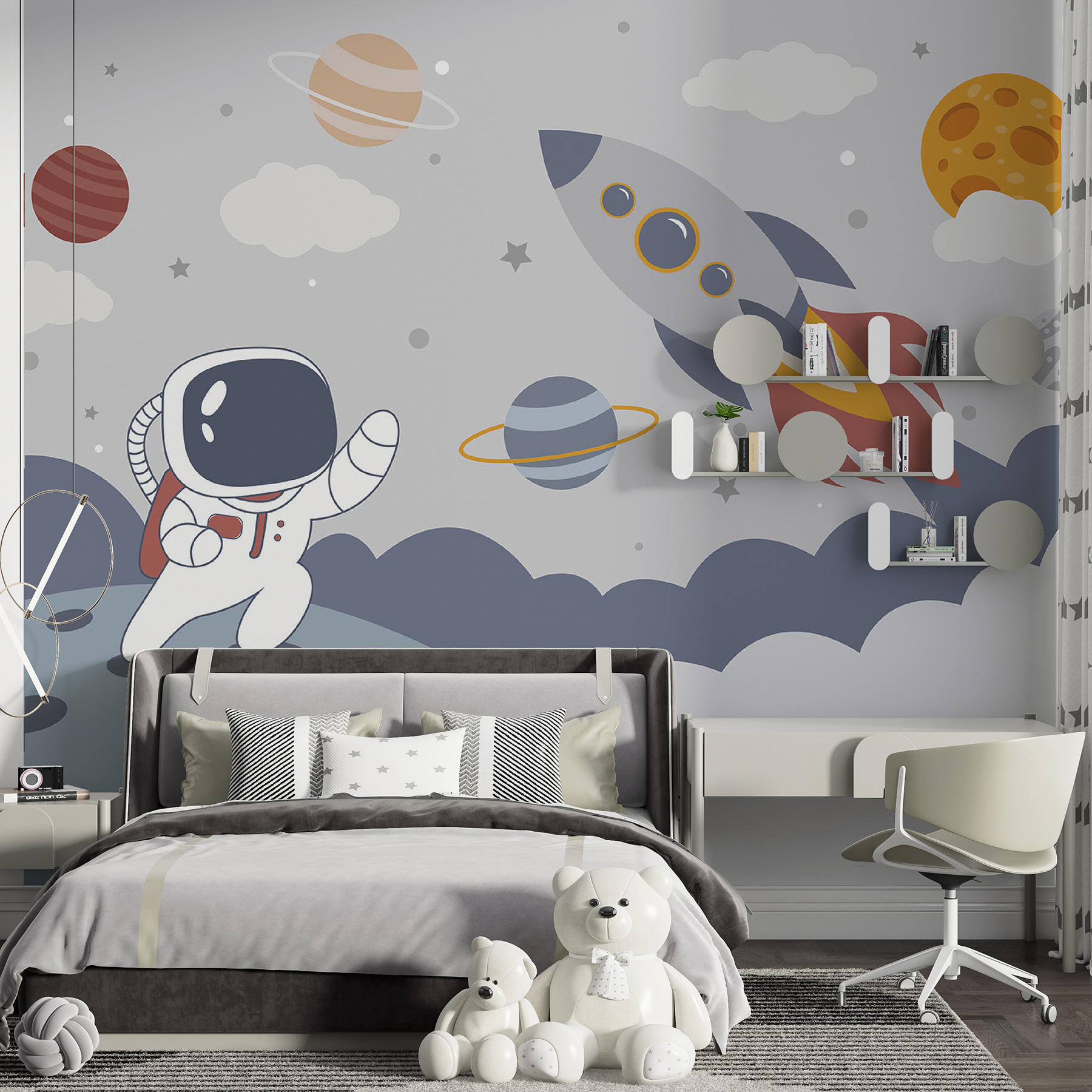 Premeniť detský priestor na vesmírne dobrodružstvo je také jednoduché ako táto nástenná maľba s pôvabným astronautom a žiarivými planétami. Len si predstavte, ako sa dieťatko pozerá na tento výjav z iného sveta a sníva o vesmírnych cestách a medzigalaktických eskapádach. Hravý dizajn prináša dávku predstavivosti, ktorá je ideálna na vzbudenie zvedavosti o vesmír. Tieto farebné krúžky a rozmarné mraky nabádajú k snívaniu a cestovaniu za rozprávkami, vďaka čomu bude čas pred spaním o niečo menej obyčajný. Nie je to len dekorácia, je to brána do galaxie plnej zázrakov a radosti!