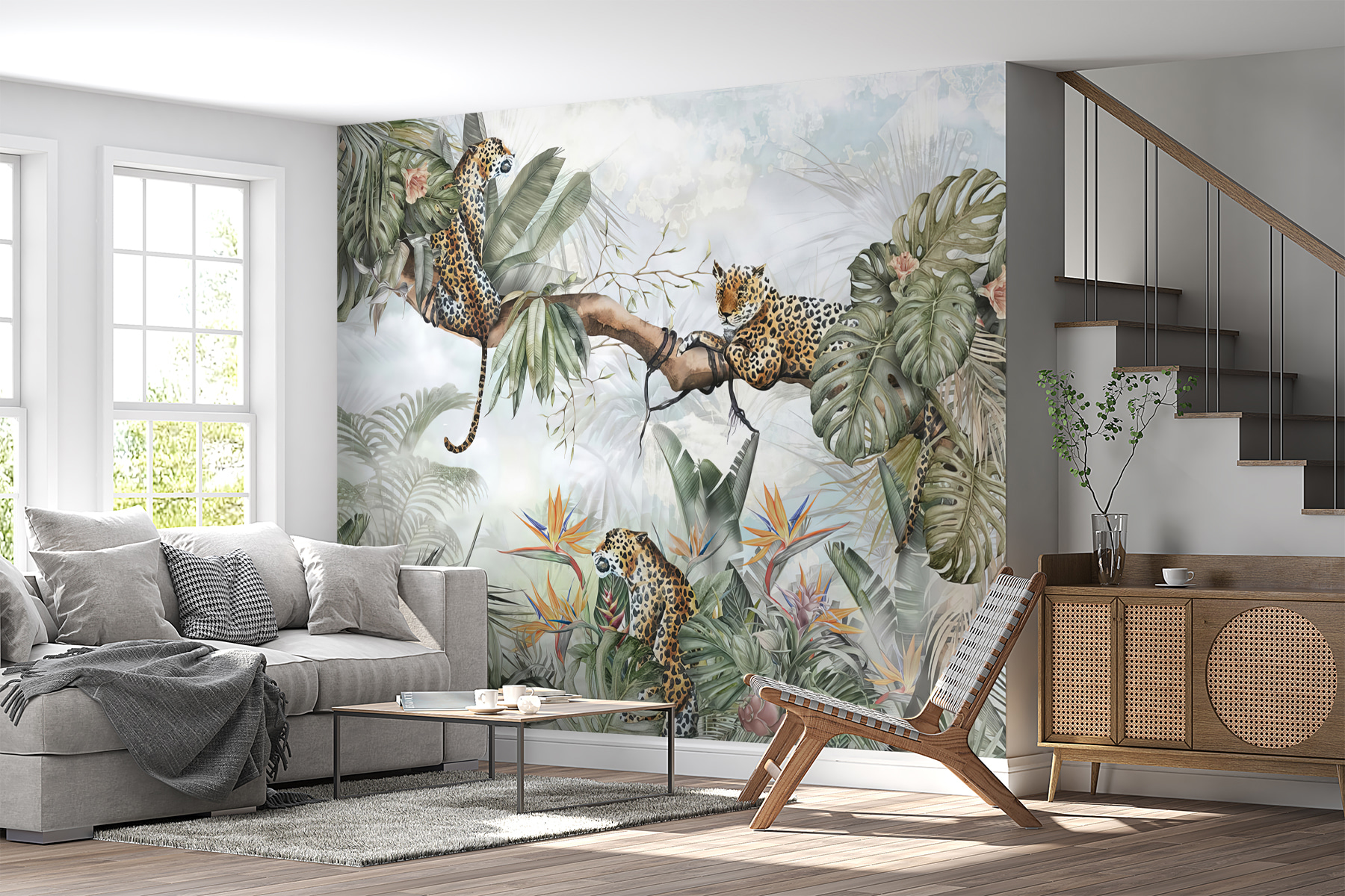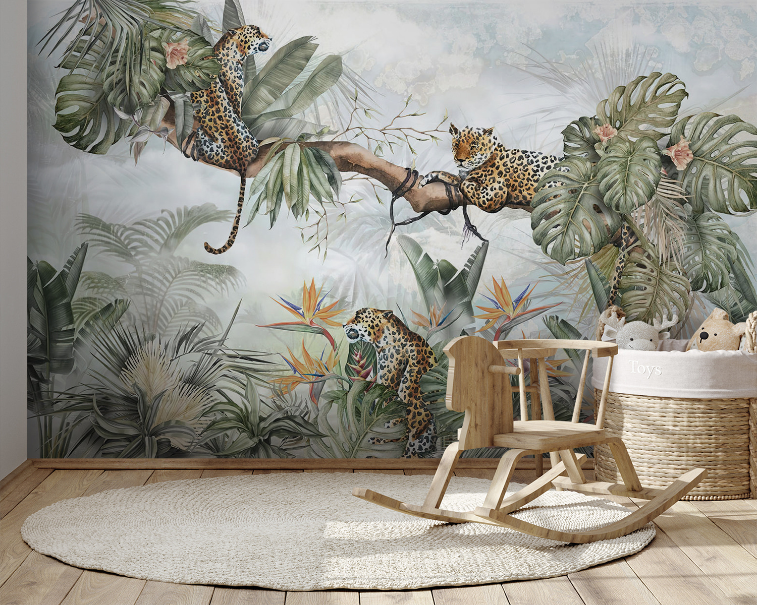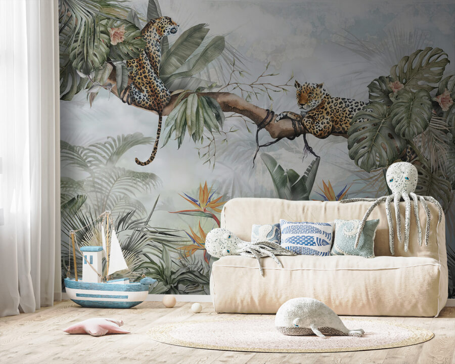 Premeňte svoj priestor pomocou tejto očarujúcej nástennej maľby leoparda v bujnej džungli. Predstavte si útulné zákutie, kde môžu deti popustiť uzdu svojej fantázii – či už ide o dobrodružné príbehy o objaviteľoch džungle, alebo pokojné popoludnia strávené v objatí s knihou. Tie hravé leopardy posadené v listnatých stromoch vzbudia zvedavosť a údiv. Žiarivá zeleň a farebné kvety vytvárajú veselú kulisu, ktorá pôsobí sviežo a živo. Je ideálny na pridanie kvapky prírody do interiéru, vďaka čomu sa každý pohľad stane mini únikom. Nadýchnite sa teda atmosféry džungle a nechajte sa baviť!