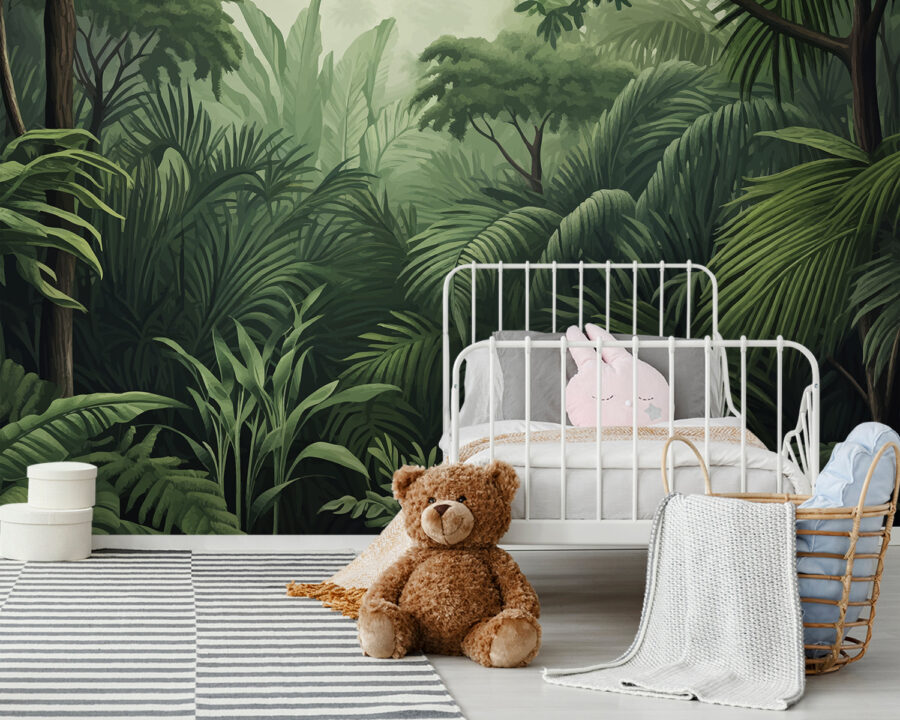 Oživte svoj priestor touto nástennou maľbou “Bujný dažďový prales” – je to ako mini dovolenka zakaždým, keď sa na ňu pozriete! Predstavte si husté lístie tropickej džungle priamo vo svojej izbe. Je ideálna na pridanie kvapky zelene a nádychu dobrodružstva, najmä v detskej izbe alebo v útulnom kútiku, kde potrebujete trochu kúzla. Vaši hostia možno začnú hľadať opice alebo tukany, vážne! Ponorte sa do pokoja prírody bez toho, aby ste museli vyjsť von. Táto nástenná maľba je navyše taká živá a detailná, že takmer budete počuť šumenie listov a štebot vtákov. Rozhodne to stojí za tú dobrú náladu!