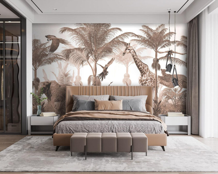 Premeňte každú miestnosť na divoké útočisko s touto očarujúcou fototapetou so žirafou a vtákom, ktorí sa preháňajú uprostred sviežeho lesa. Je to ako mať mini safari priamo u vás doma, kde každý pohľad vyvolá kúsok radosti. Predstavte si deti, ktoré sa chichocú, keď zbadajú každé zviera skrývajúce sa v lístí, alebo príjemné večery strávené rozprávaním príbehov o dobrodružstvách v džungli. Zemité tóny vytvárajú upokojujúcu atmosféru, ktorá je ideálna do detskej izby alebo herne. Táto nástenná maľba nie je len dekoráciou – je to brána k predstavivosti, ktorá prináša zázrak prírody do interiéru. Kto by sa nechcel každý deň cítiť ako na dobrodružnej ceste džungľou?
