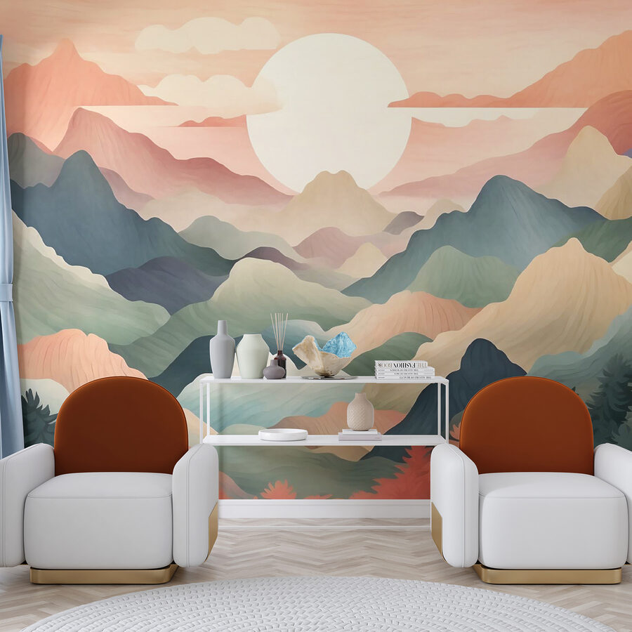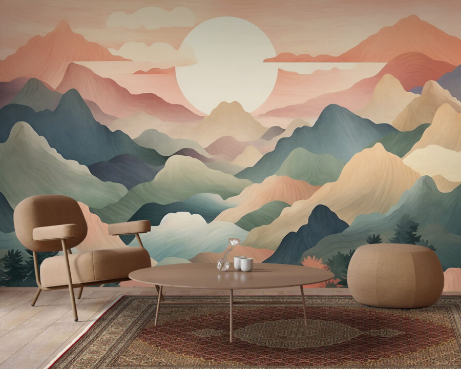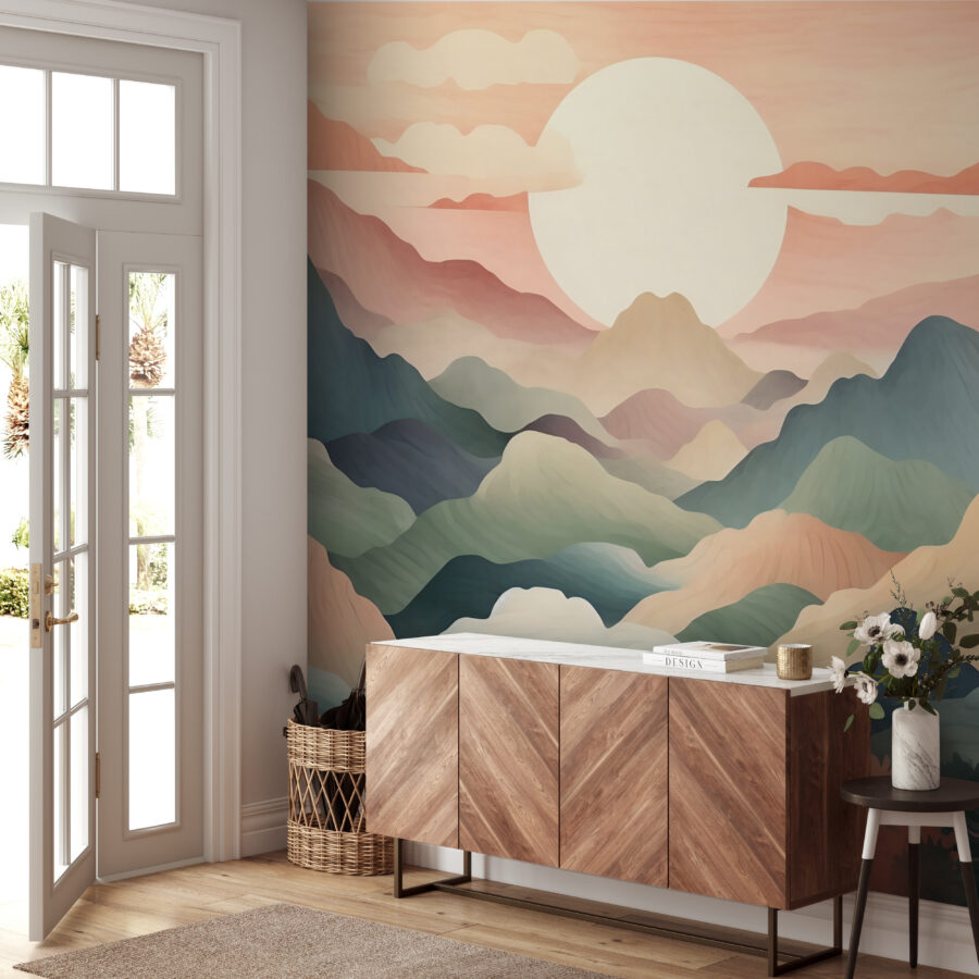 Predstavte si, že sa každý deň prebúdzate do zasnenej krajiny, kde sa hory stretávajú s pokojnou oblohou – priamo vo vašej obývačke! Freska “Biely kruh na oblohe” zahalí váš priestor do jemných odtieňov a upokojujúcej scenérie. Je to ako mať na stene osobné útočisko. Ideálna pre milovníkov prírody alebo tých, ktorí chcú len trochu viac zenu. Jemné pastelové farby takmer našepkávajú relaxáciu, takže je skvelým pozadím pre lenivé nedeľné rána alebo útulné večery s knihou. Navyše to nie je len nástenná maľba, je to pocit – pokojný únik z každodenného zhonu.