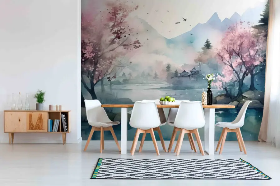 Táto nástenná maľba s názvom “Nástenná maľba stromu s ružovými kvetmi” je ako vstup do sna. Predstavte si tento výjav na stene: pokojné hmlisté ráno, nádherné ružové kvety rozkvitnuté a pokojné hory maľujúce pozadie. Nie je to len umenie – je to atmosféra. Ideálny do obývačky, spálne alebo dokonca kancelárie, ktorá potrebuje trochu zenu. Každý deň sa budete cítiť ako po prebudení v rozprávke. Navyše, pozerať sa naň pri popíjaní rannej kávy… Blaženosť. A nepotrebujeme všetci trochu viac blaženosti?