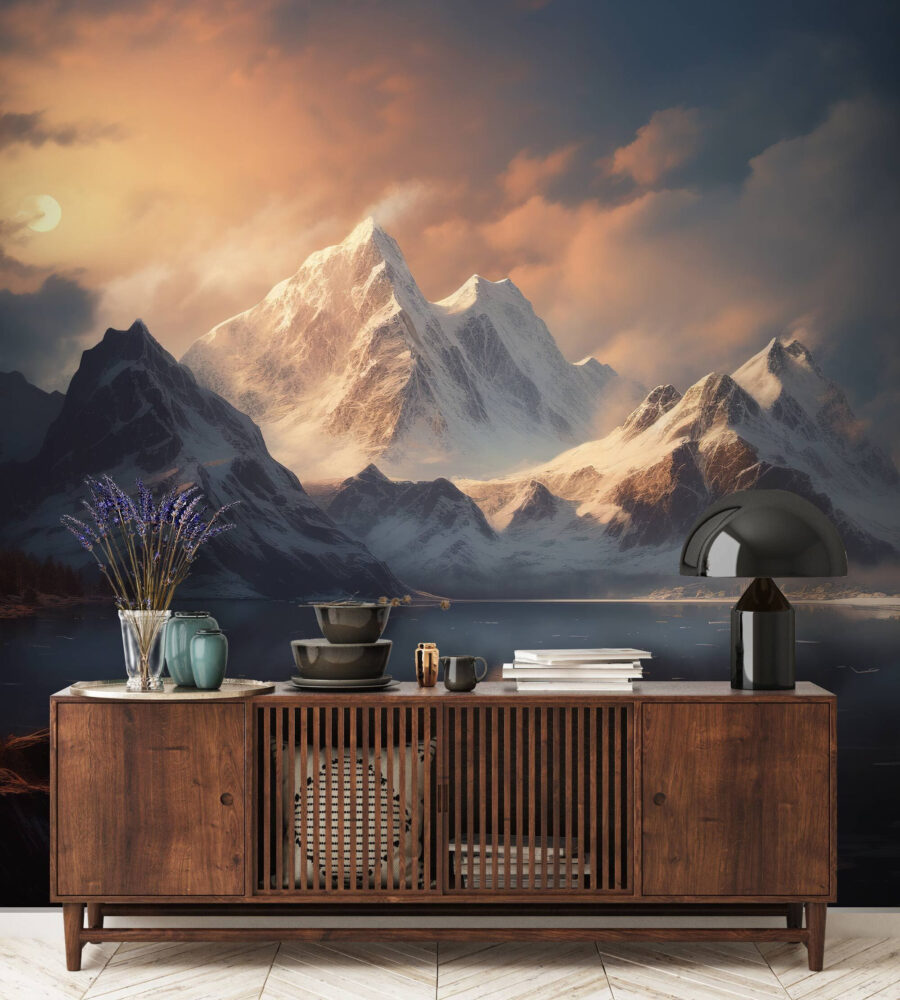 Predstavte si, že vstúpite do miestnosti a okamžite pocítite chlad zasneženého horského vánku priamo u vás doma. Táto nástenná maľba “Zasnežené pohorie s mrakmi” je ako okno do majestátnych Skalistých hôr (bez omrzlín). Hory sú také ostré a dramatické, že prakticky samy rozprávajú príbeh. Je ideálna na to, aby dodala každému priestoru nádych horského kúzla – tak trochu ako mini dovolenka zakaždým, keď okolo nej prejdete. Či už ste milovníkom prírody, alebo len potrebujete úžasné pozadie pre svoje útulné večery, táto nástenná maľba určite oživí váš priestor a poskytne pokojný únik.
