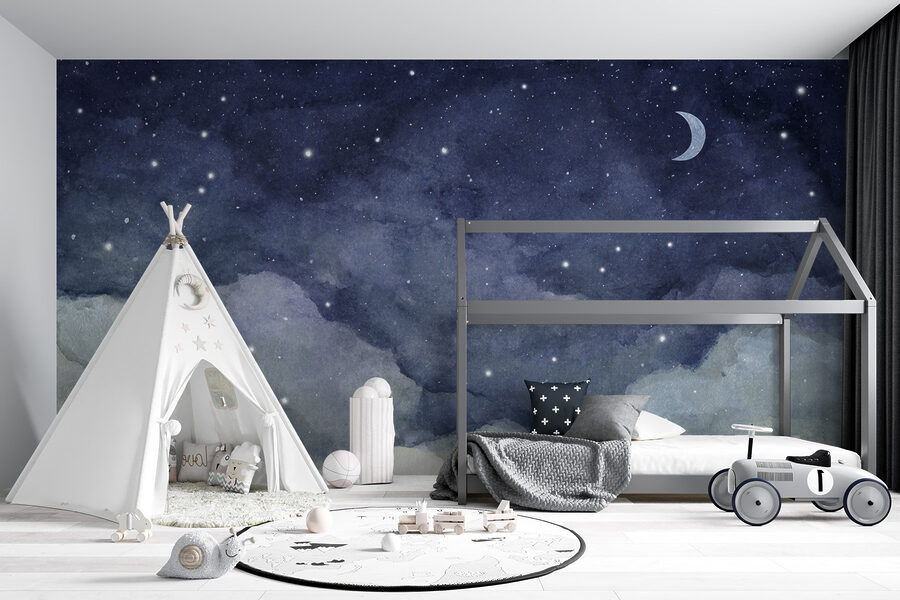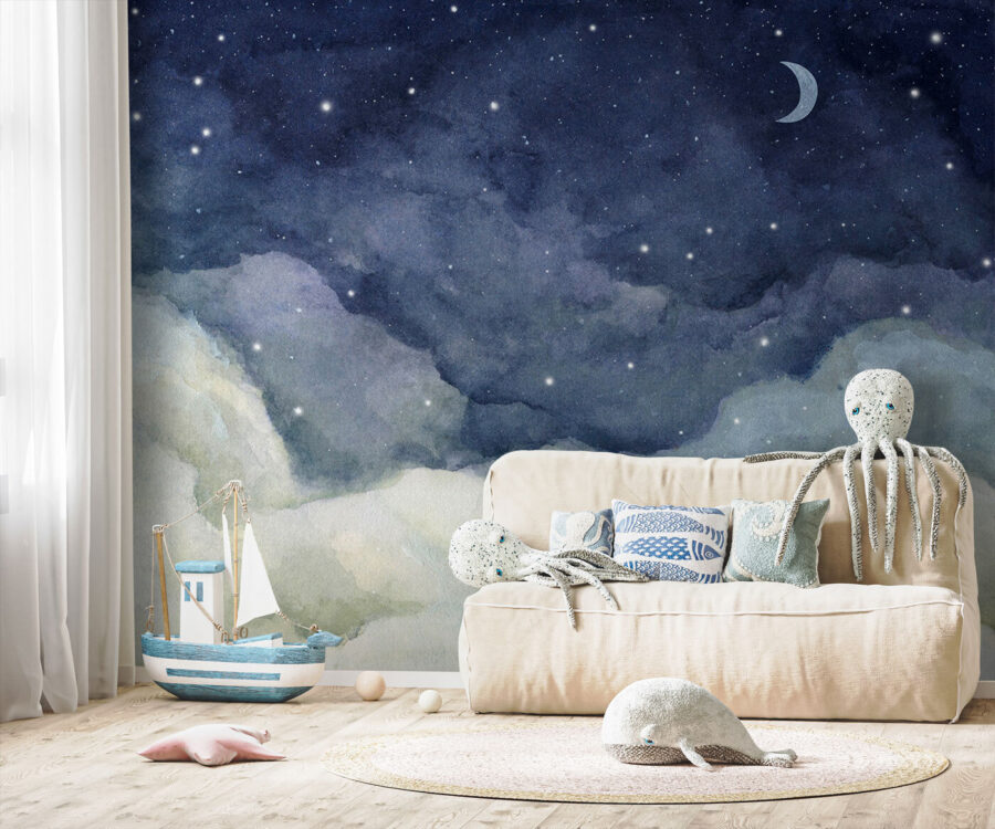 Premeňte akúkoľvek stenu na zasnený únik s touto očarujúcou nástennou maľbou mrakov a hviezd. Predstavte si pokojnú oblohu, na ktorej sa môžu malé deti unášať do svojich vlastných dobrodružstiev, hľadiac na mäkké, nadýchané obláčiky a trblietajúce sa hviezdy. Je to ako mať kúsok nočnej oblohy priamo vo svojej izbe! Táto nástenná maľba je ideálna do detského priestoru a dodáva mu rozmarný nádych, ktorý podnecuje predstavivosť. Či už ide o rozprávky pred spaním, polnočné behy na občerstvenie alebo snívanie, táto nástenná maľba vytvára útulnú atmosféru, ktorá je tá správna. Premeňte tieto steny na zázračné plátno, kde každý pohľad nabáda k novému príbehu. Aký fantastický spôsob, ako inšpirovať kreativitu a lásku k nočnej oblohe!