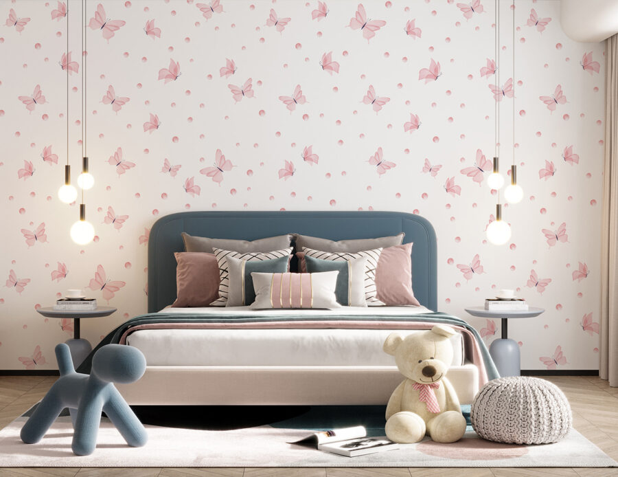 Chceli ste niekedy do svojho priestoru vniesť kúzlo? Pozrite si túto nástennú maľbu “Ružový motýľ s čiernymi krídlami” – je to ako vstúpiť do rozmarnej rozprávkovej záhrady. Jemné akvarelové motýle poletujúce okolo jemných ružových bodiek sú ideálne do detskej izby, kde sa čas spánku zmení na čas rozprávok pod oblohou plnou motýľov. Predstavte si, ako vaše dieťatko sníva o nežných krídlach a čarovných lesoch.