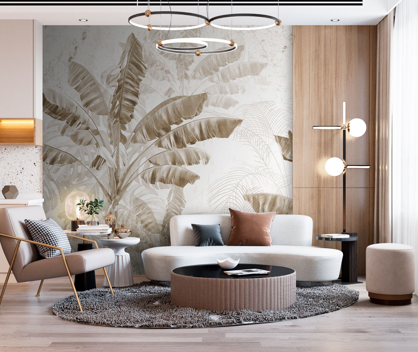 Predstavte si svoju obývaciu izbu zahalenú do pokojnej, zemitej atmosféry nástennej maľby “Tropické listy v sépiovom tóne”. Je to ako vstúpiť do sviežeho raja bez toho, aby ste museli opustiť svoj domov. Vďaka jemným sépiovým tónom pôsobí pokojne a prívetivo, ako malá útulná oáza. Ideálna na relaxáciu pri šálke čaju alebo na to, aby ste sa jednoducho stratili v dobrej knihe. Detaily sú neuveriteľné – pod prstami takmer cítite štruktúru listov.