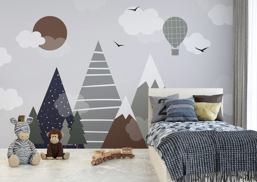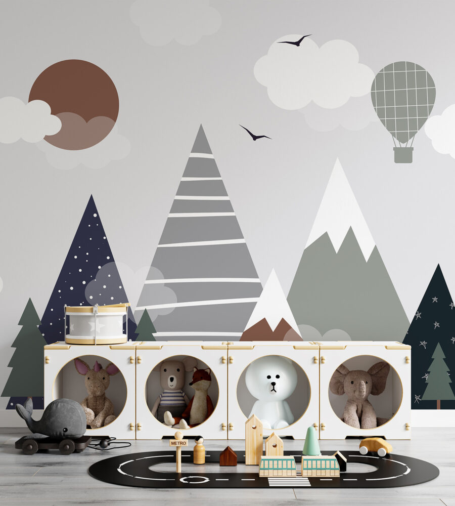 Či už ide o čas rozprávania alebo hrania, deti budú mať pocit, že vstúpili do zasneného lesa. Umná zmes vrcholov, borovíc a obláčikov podnieti ich kreativitu a prenesie ich do ďalekých krajín. Skvele sa hodí pre bábätká, batoľatá a ďalšie deti. Navyše, komu by sa nepáčilo mať na stene vznášajúci sa teplovzdušný balón? Ideálne do detských izieb alebo akéhokoľvek priestoru, ktorý potrebuje extra nádych zázraku.