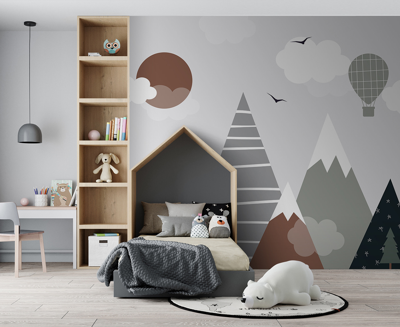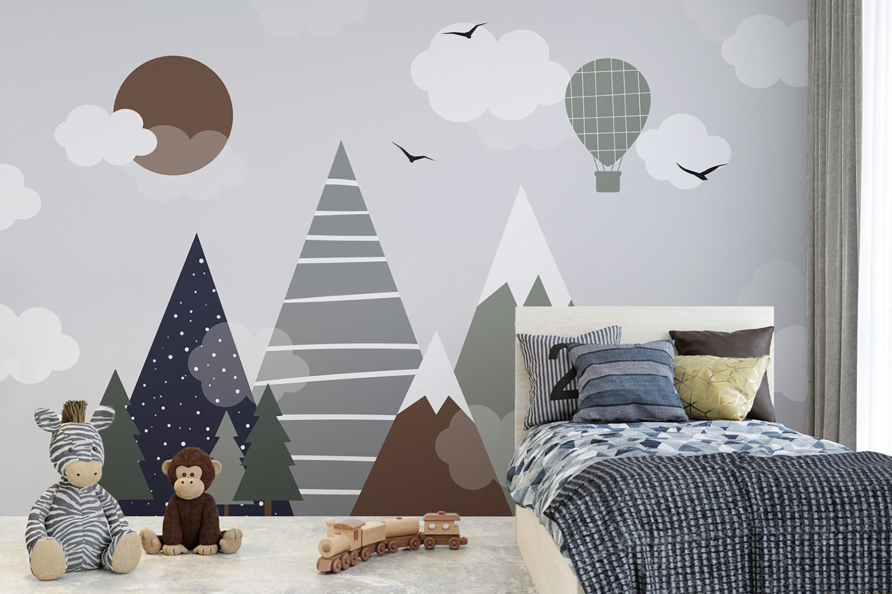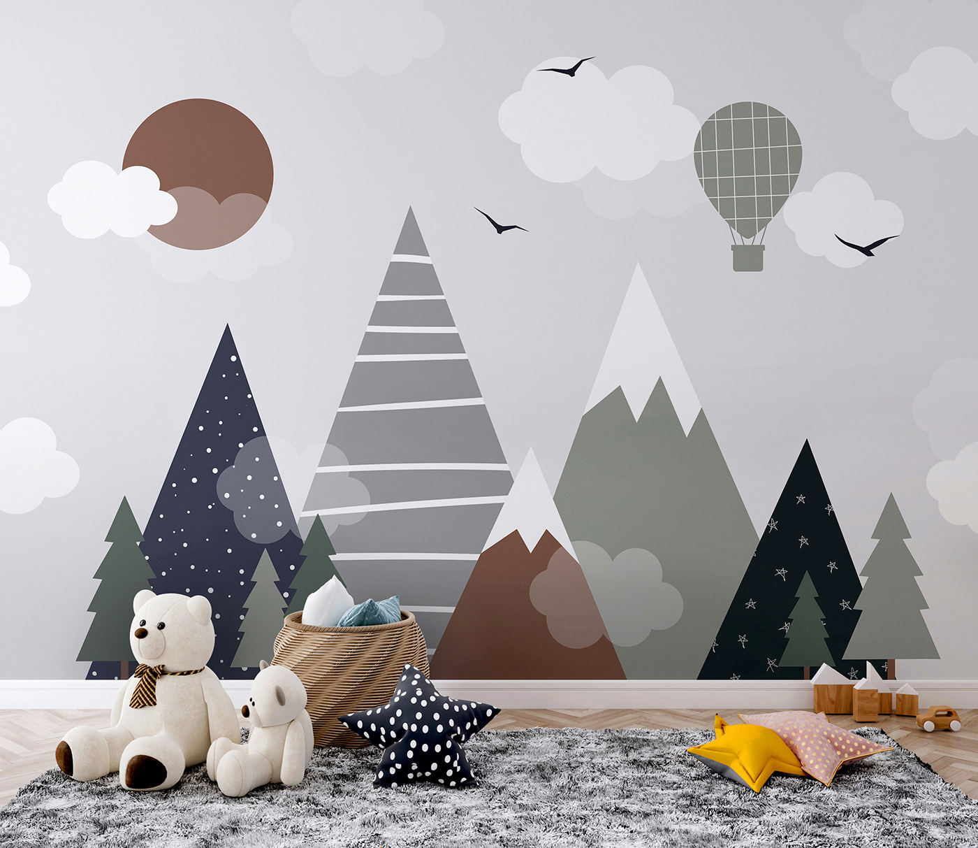 Či už ide o čas rozprávania alebo hrania, deti budú mať pocit, že vstúpili do zasneného lesa. Umná zmes vrcholov, borovíc a obláčikov podnieti ich kreativitu a prenesie ich do ďalekých krajín. Skvele sa hodí pre bábätká, batoľatá a ďalšie deti. Navyše, komu by sa nepáčilo mať na stene vznášajúci sa teplovzdušný balón? Ideálne do detských izieb alebo akéhokoľvek priestoru, ktorý potrebuje extra nádych zázraku.