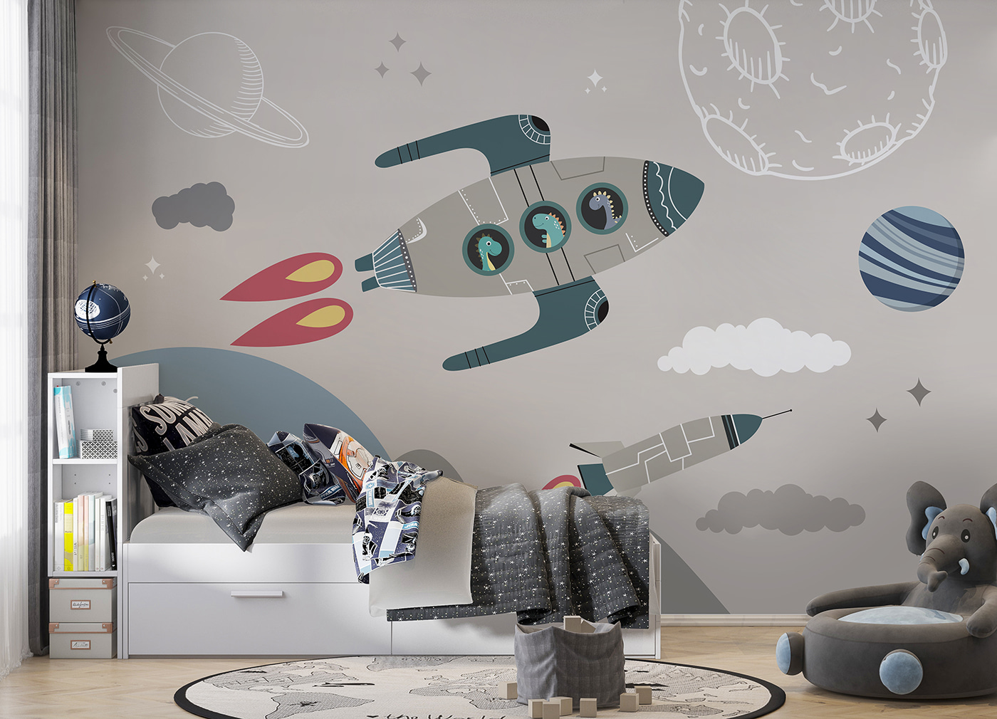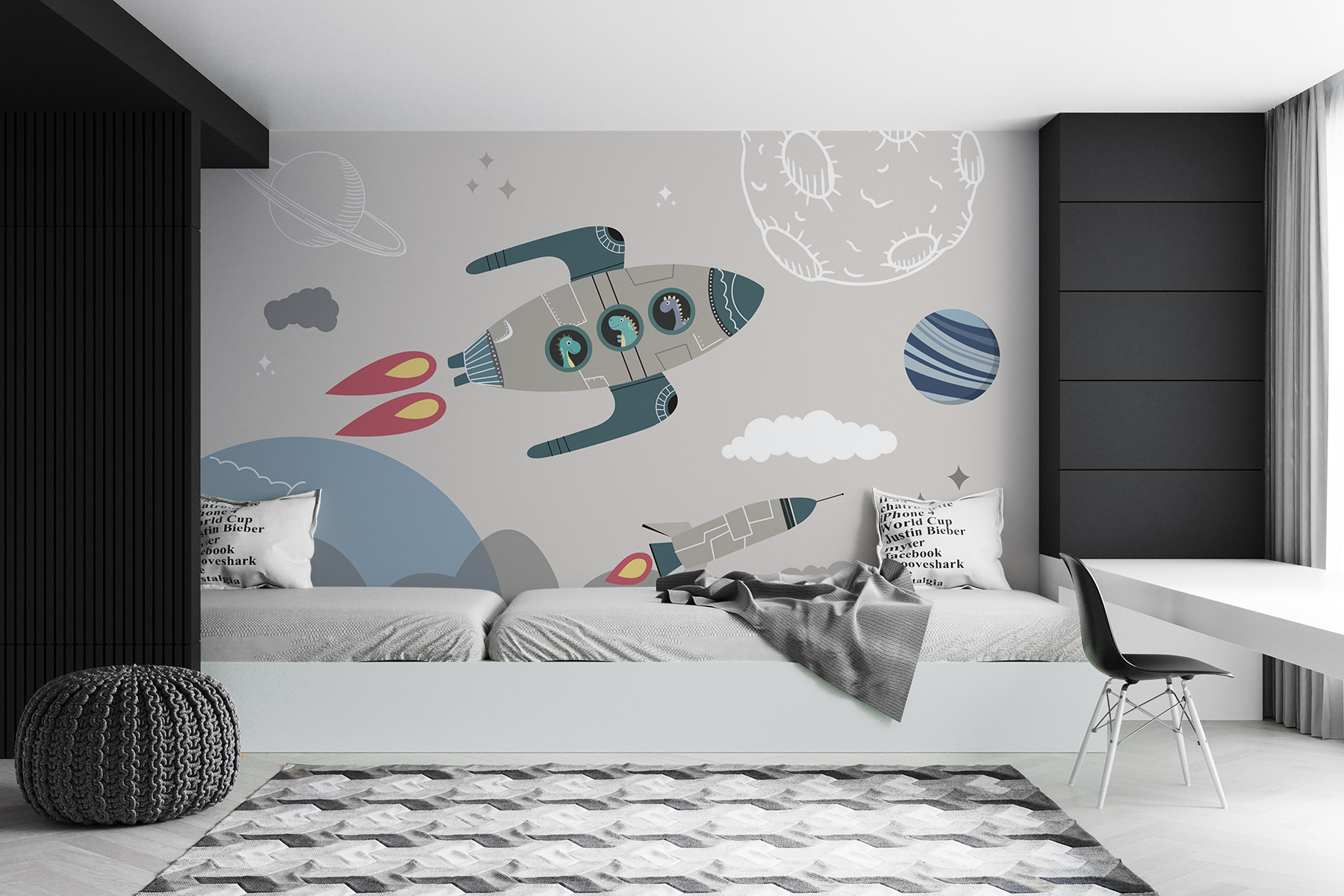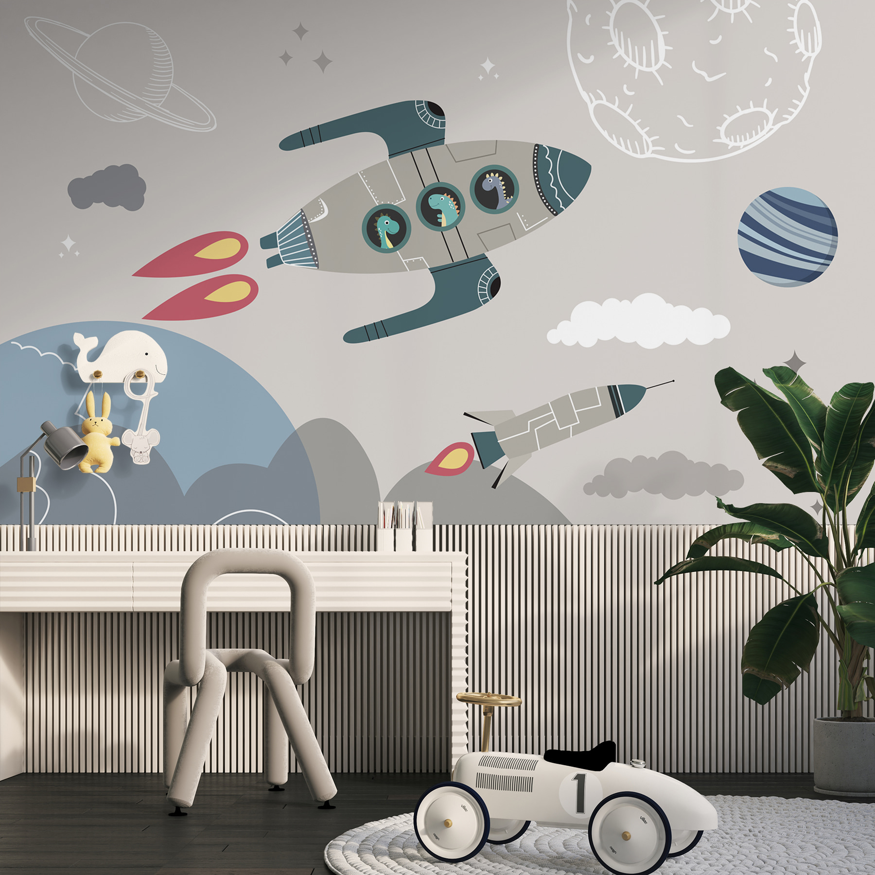 Predstavte si to: dinosaury letiace vesmírom v raketových lodiach! Je to čistá mágia na stene! Táto nástenná maľba je ideálna do každej detskej izby a podnecuje nekonečné dobrodružstvá a divokú predstavivosť. Predstavte si príbehy pred spaním o astronautoch T-Rexoch a pristátiach dinosaurov na Mesiaci. Sledovať, ako sa vášmu dieťatku rozžiaria oči zakaždým, keď ju uvidí – to je na nezaplatenie. Farby sú jemné a pútavé a vytvárajú útulnú, ale vzrušujúcu atmosféru. Je to rozmarná zmes prehistorického šarmu a vesmírnej pohody. Ideálne pre malých snílkov a budúcich objaviteľov. Raketový pohon pred spaním? Áno, prosím!