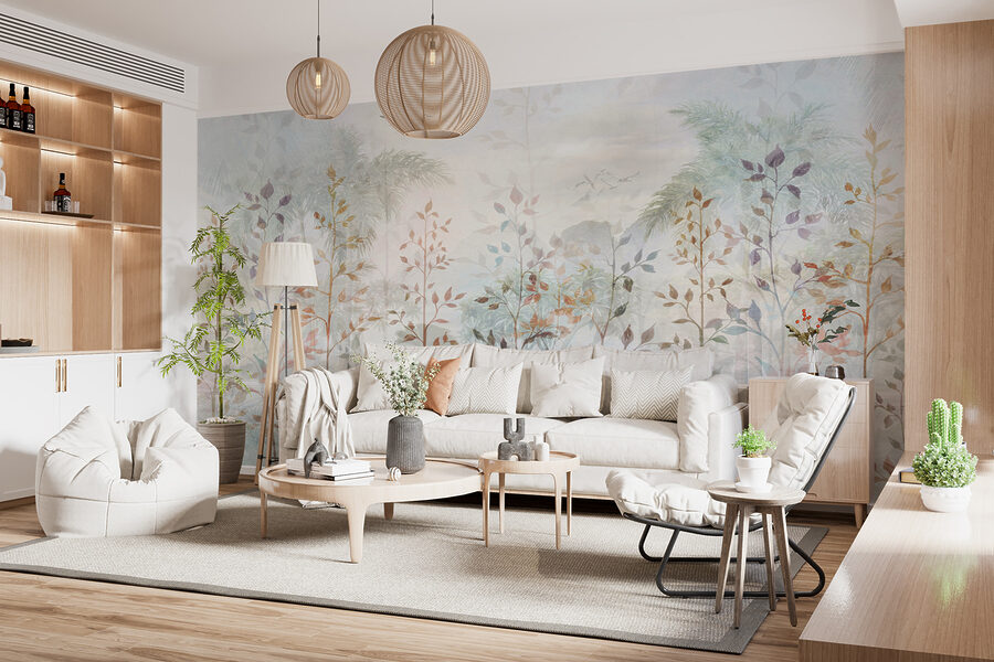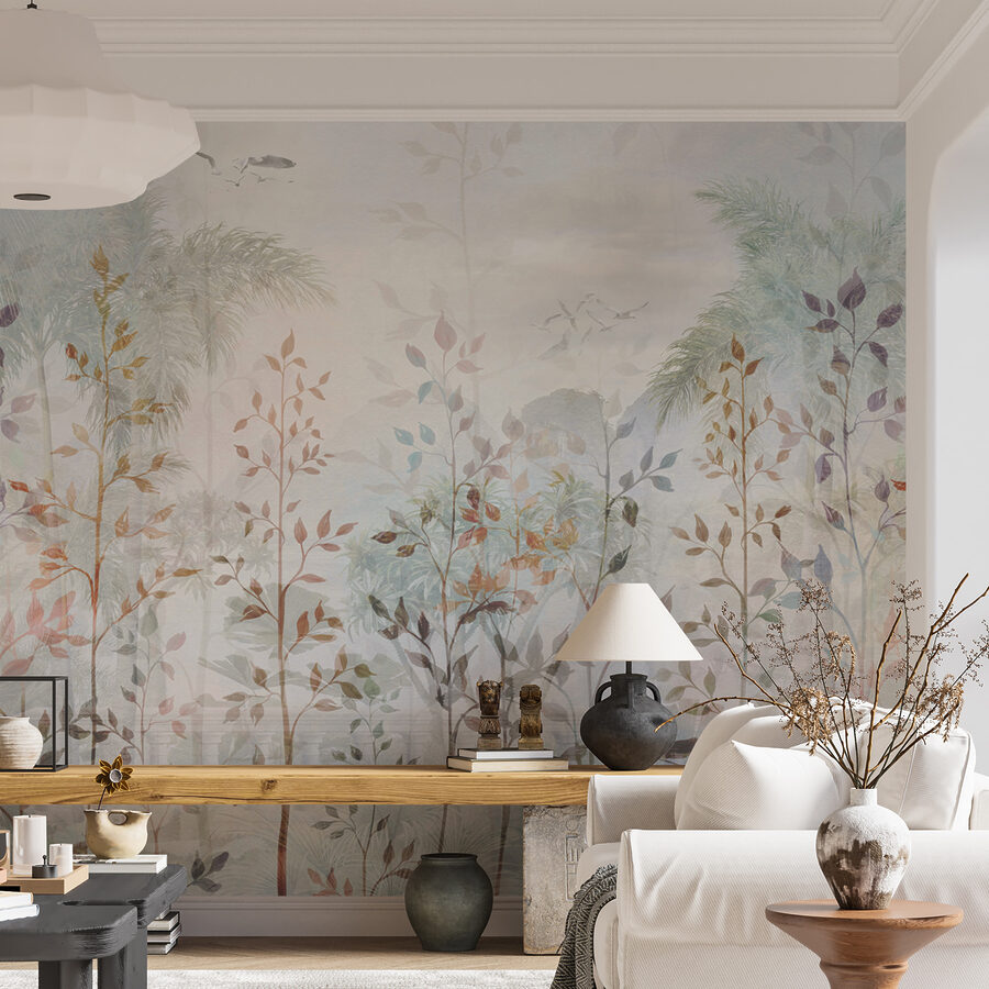 Premeňte akúkoľvek miestnosť na zasnený únik s nástennou maľbou “Prírodná pastelová krajina snov v hmle”. Toto ohromujúce umelecké dielo pozýva do interiéru na pokoj prírody a obsahuje jemné pastelové farby, ktoré jemne tancujú po stenách. Predstavte si, ako popíjate rannú kávu obklopení šepkajúcimi listami a jemne sa kolísajúcimi rastlinami. Je to ako mať pokojnú záhradu priamo u vás doma. Každý pohľad vás vtiahne dovnútra a nechá vás premýšľať, či by ste nemohli jednoducho prejsť cez nástennú maľbu a prechádzať sa medzi týmito stromami. Ideálne pre priestory, ktoré túžia po nádychu pokoja a iskriacom rozmaru! Kto by to bol povedal, že dekorácie na stenu môžu byť také živé?