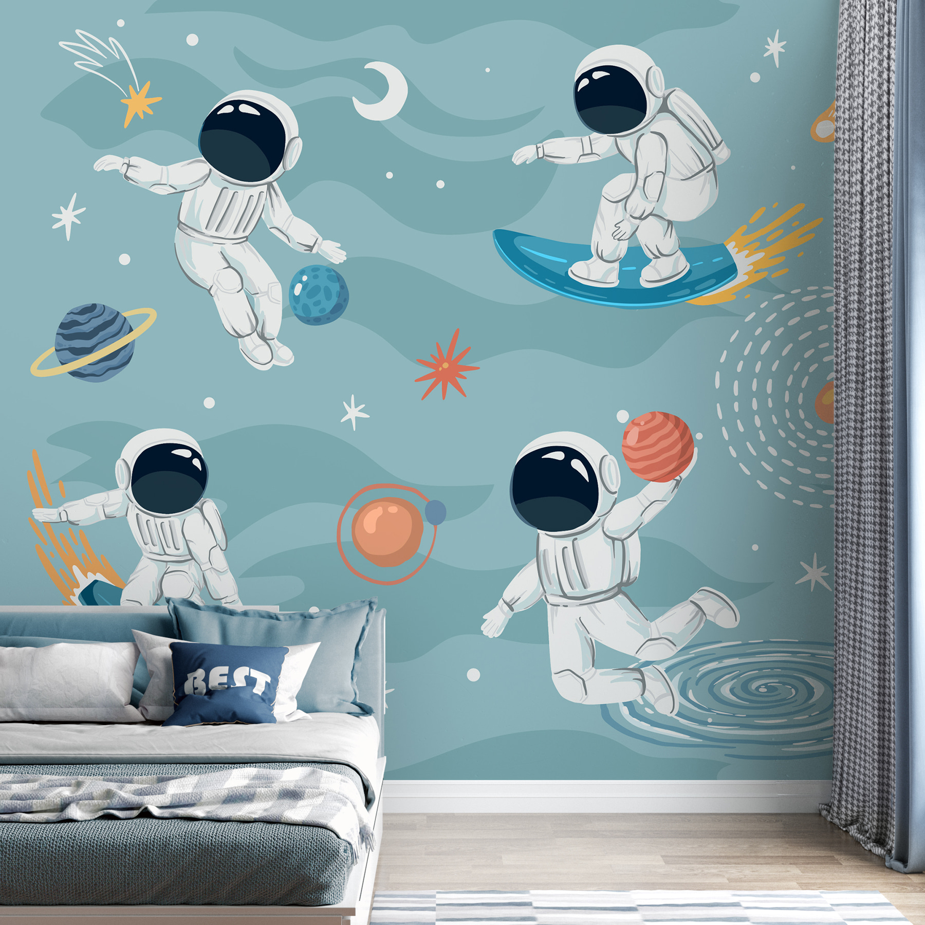 Predstavte si, že s touto úžasnou nástennou maľbou premeníte detskú izbu na vesmírne ihrisko. “Karikatúra astronauta na surfe” vás vezme na divokú jazdu vesmírom – je to ako udierať na vlny galaxie priamo z vašej steny. Perfektne sa hodí na rozprúdenie detskej fantázie alebo na pridanie nepredvídateľného akcentu do detskej izby. Obsahuje všetky prvky – planéty, hviezdy, dokonca aj trochu kométy. Viete si predstaviť príbehy pred spaním? Snívajú o dobrodružstvách na Mliečnej dráhe, ako jazdia na padajúcich hviezdach. Je to živé, zábavné a trochu netradičné – presne také, aké by malo byť detstvo. V každom priestore sa budete cítiť ako vo vesmíre!