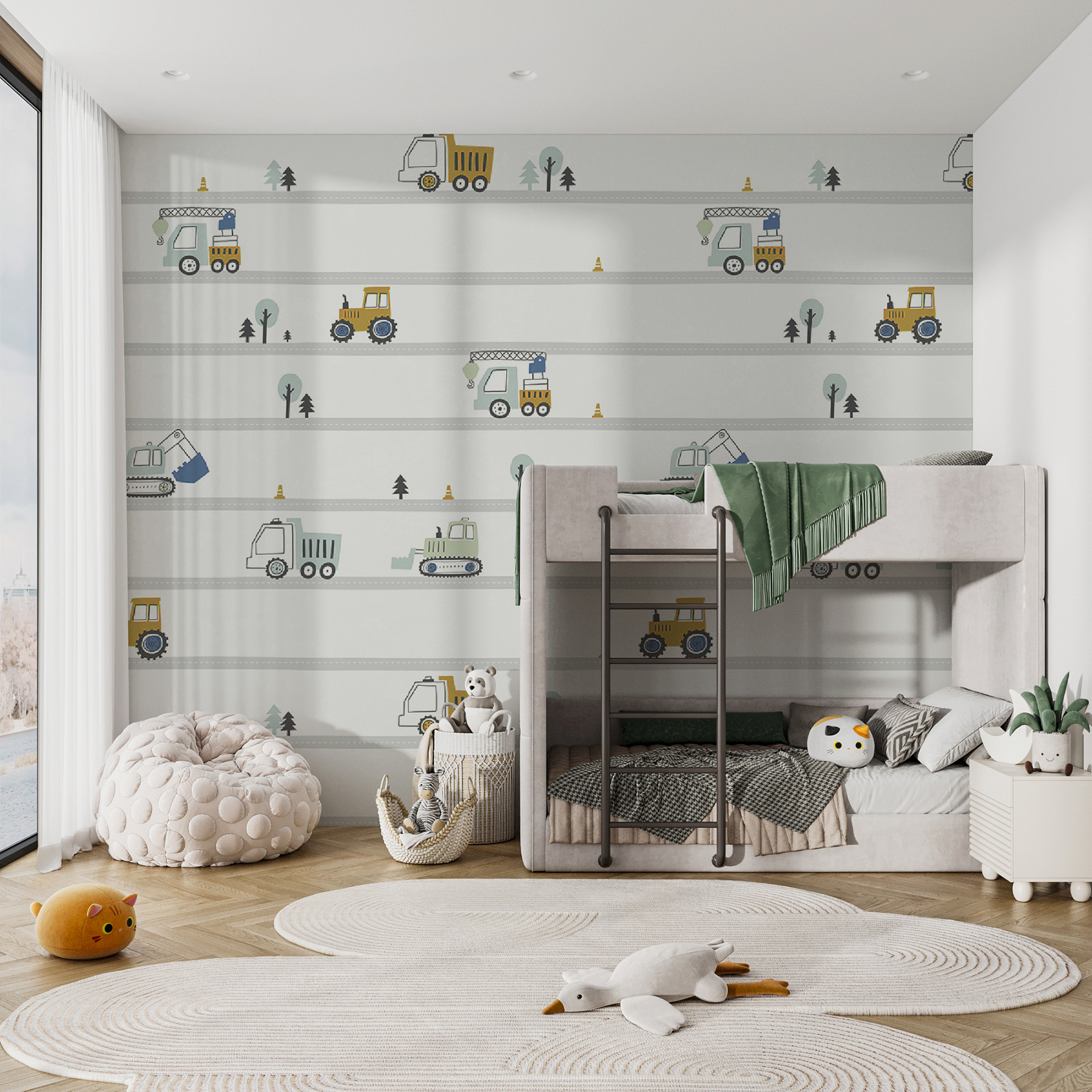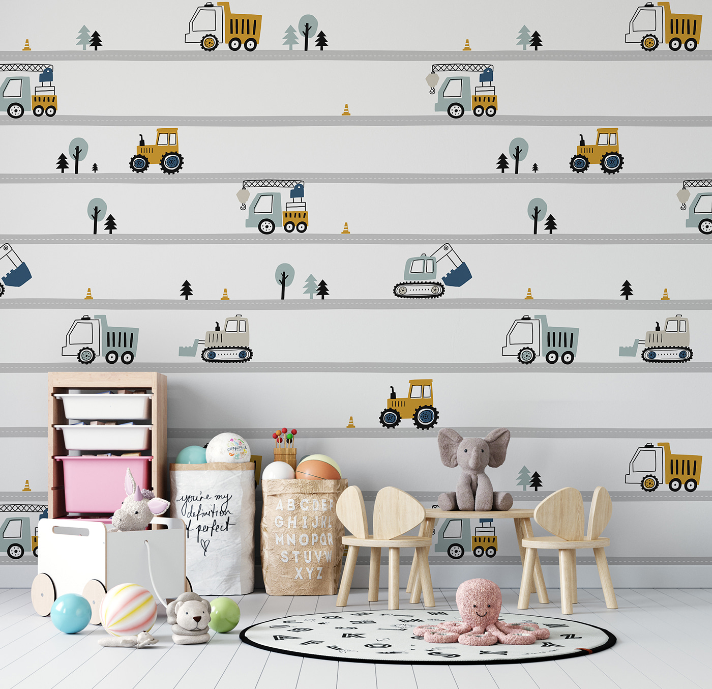 Chcete do detskej izby vniesť trochu hravej atmosféry? Pozdravte “Nástenné maľby Žltý traktor s čiernymi kolesami” – rozkošná zmes šarmu a zábavy! Ideálne pre deti, najmä pre tých najmenších, ktorí sa nevedia nabažiť veľkých strojov a traktorov. Táto fototapeta sa nielen nalepí na stenu, ale premení priestor na mini dobrodružnú krajinu, kde sa predstavivosť ujme vedenia. Žiarivé žlté a klasické čierne farby na chladnom pozadí dodávajú traktorom výraz a vyzývajú takmer počuť hukot tých veľkých kolies.