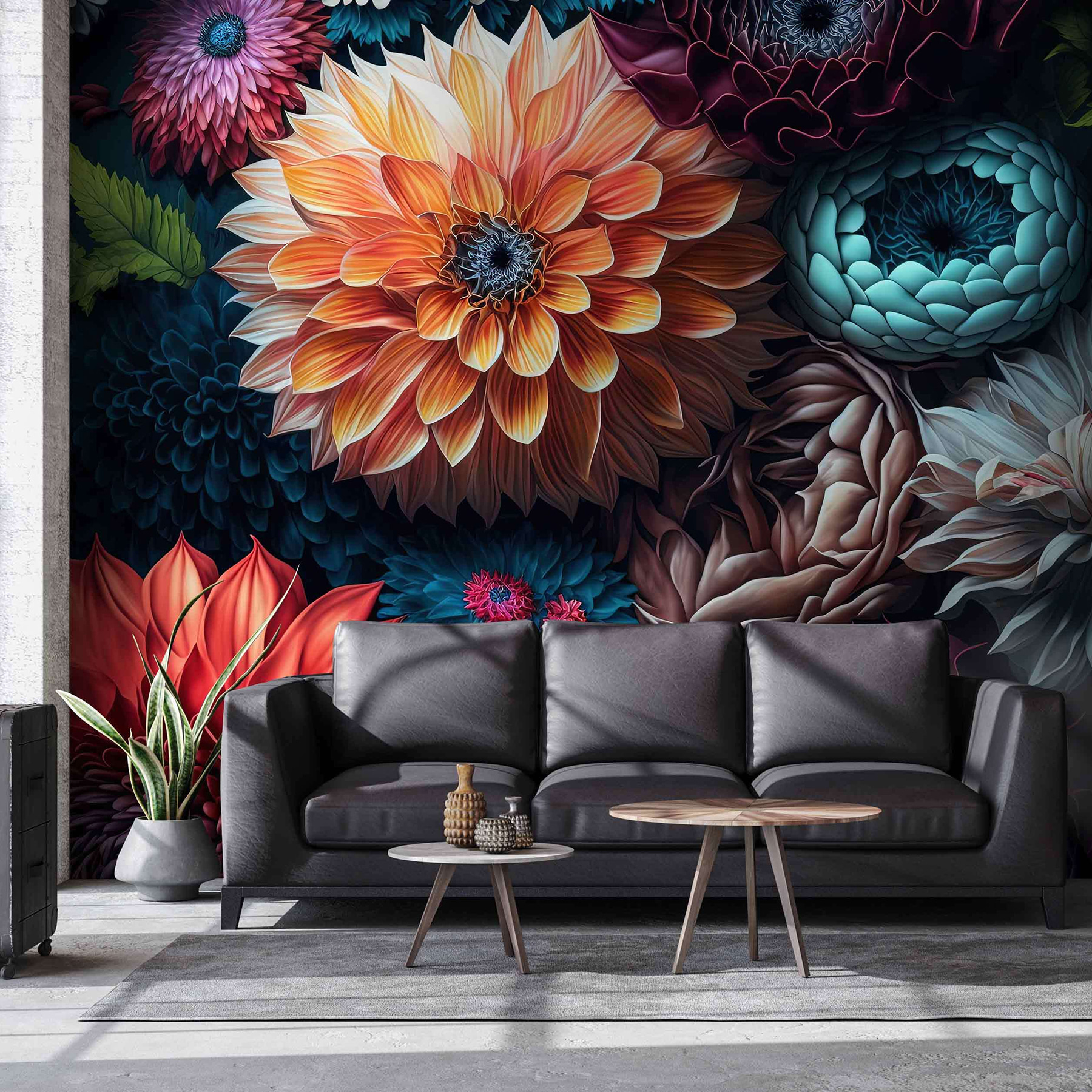 Premeňte nudnú stenu na úchvatnú záhradu s nástennou maľbou “Farebné kvety kvitnúce eleganciou”. Predstavte si, že vstúpite do žiarivej kvetinovej krajiny priamo vo svojej obývačke. Tieto svieže kvety hýriace farbami dokážu aj v tých najpochmúrnejších dňoch navodiť pocit jari. Je to ako zavesiť kus prírody v interiéri – nie je potrebné zalievanie!