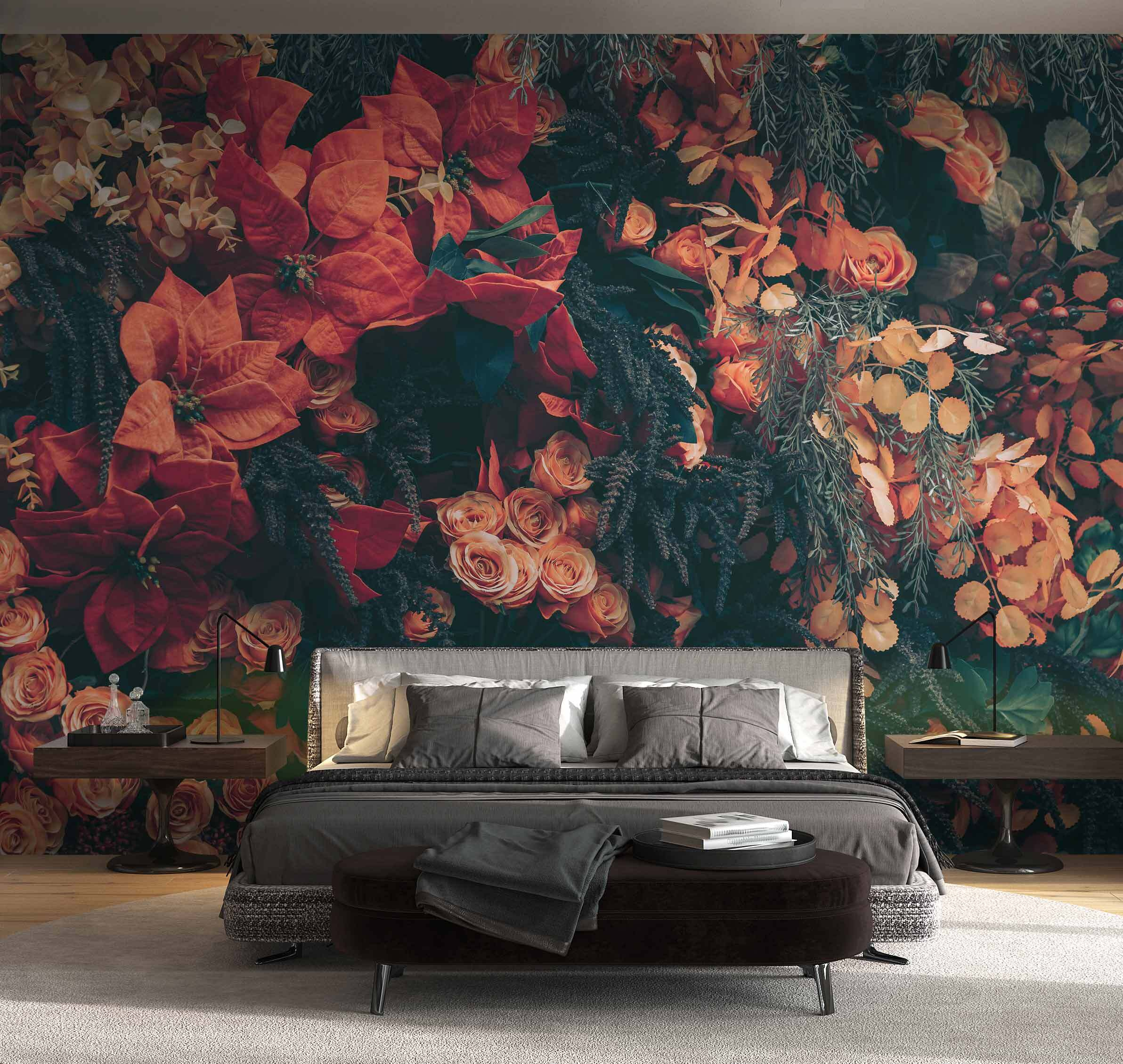 Premeňte obyčajnú stenu na ohromujúcu ukážku prírody pomocou tejto živej nástennej maľby s jesennými kvetmi. Predstavte si, že vstúpite do útulného priestoru a privíta vás ohnivá červená a teplá oranžová, ktoré takmer šepkajú sladké pozvanie na oddych. Hravá zmes kvetov tu pôsobí ako mini záhradná párty, kde vás každý okvetný lístok pozýva na rozhovor. Bez námahy rozžiari každú miestnosť a dodá jej pocit života a prívetivosti. Táto nástenná maľba je ideálna na oživenie obývacej izby alebo na dodanie veselého nádychu spálni, je ako závan čerstvého jesenného vzduchu. Kto by sa nechcel kochať takouto krásou?