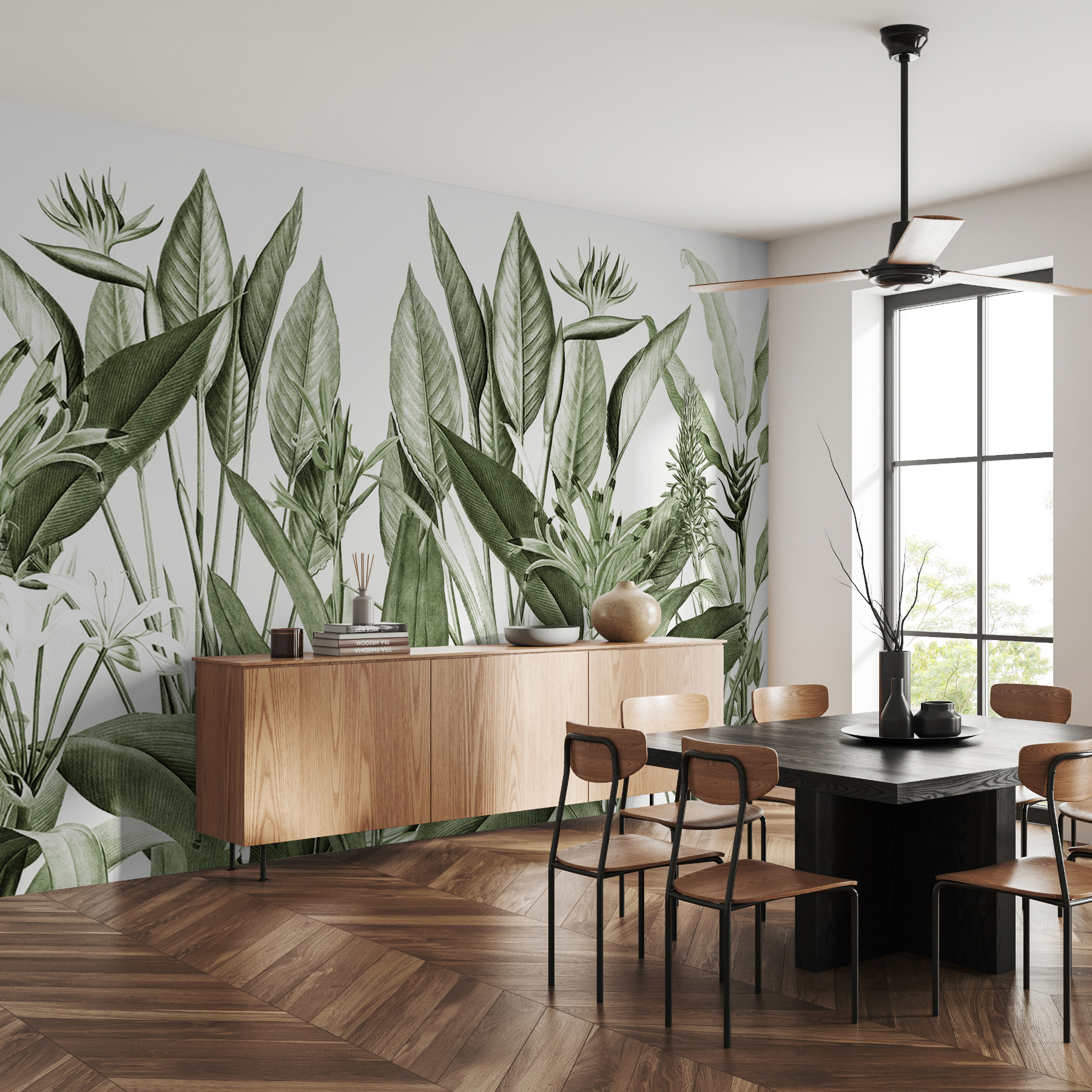 Máte pocit, že váš priestor potrebuje závan čerstvého tropického vzduchu? Pozrite si túto úžasnú “nástennú maľbu Svieža ilustrácia tropického lístia”. Je to povinnosť pre každú dušu milujúcu džungľu! Predstavte si, že sa každý deň zobúdzate s týmto pohľadom – akoby ste vstúpili do dažďového pralesa, a to priamo vo svojej obývačke. Veľká listnatá zeleň a detailné botanické rastliny, ideálne na vytvorenie pokojnej, prírodou inšpirovanej atmosféry. Pri každom pohľade na ňu si budete myslieť, že ste na sviežom ostrove. Navyše je dostatočne univerzálny na to, aby sa hodil k mnohým štýlom – či už máte radi modernú eleganciu alebo boho blaženosť. Je to ako preniesť vonkajší priestor do interiéru, ale bez chrobákov!