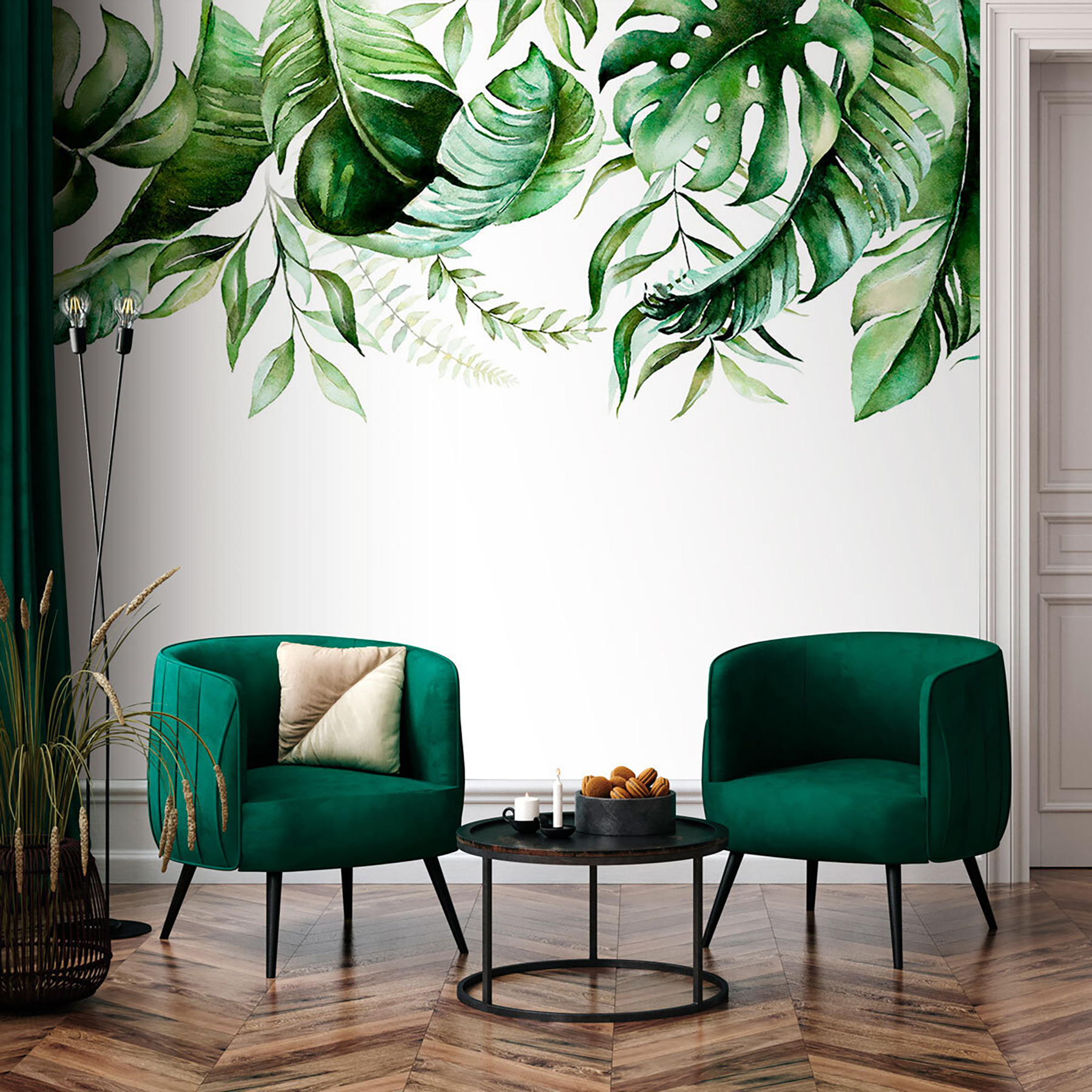 S touto nástennou maľbou so sviežimi zelenými listami premeníte nudnú stenu na útočisko džungle. Nie je to len tapeta, je to ako priniesť do interiéru svieži vánok. Predstavte si, že popíjate rannú kávu obklopení najkrajšou prírodou – samozrejme, bez chrobákov. Rôzne odtiene listov spolu tancujú a vytvárajú pokojnú atmosféru, ktorá takmer pripomína pokojnú prechádzku lesom. Perfektne sa hodí do útulných zákutí alebo ako výrazný kúsok do obývačky. Vyzýva k snívaniu o tropických útekoch, a to všetko v pohodlí domova. Len si predstavte tie komplimenty!