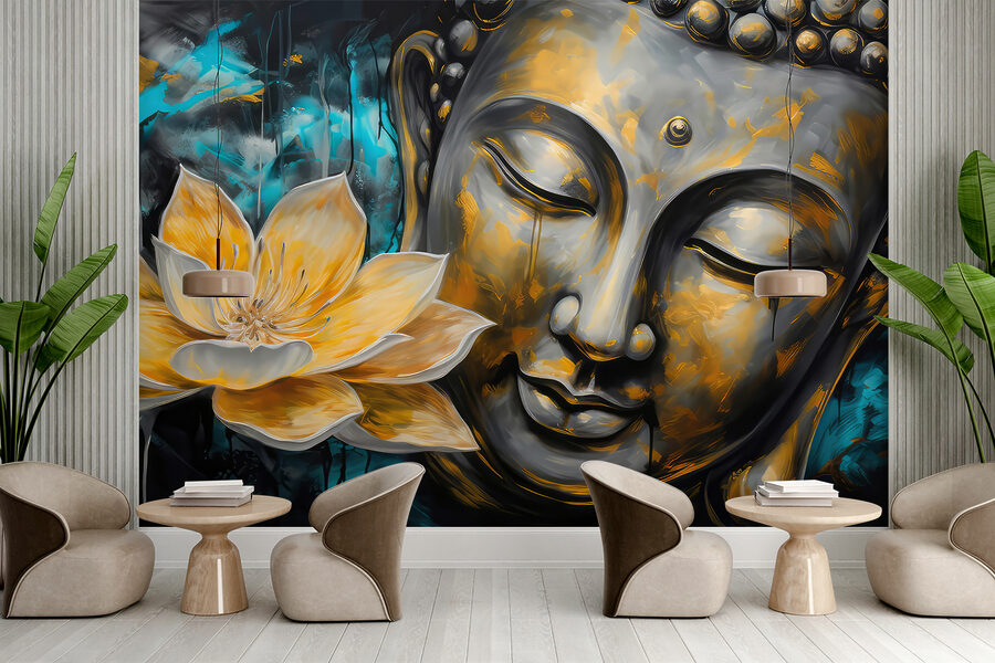 Predstavte si, že každý deň vojdete do svojej izby a privíta vás táto majestátna nástenná maľba. Nástenná maľba “Žltý kvet” nie je len kúskom pre mestské krajiny, ale ide o premenu obyčajnej steny na inšpiratívne plátno. Žiarivé žlté okvetné lístky akoby žiarili na hypnotizujúcom pozadí, ponúkajúc pop farieb a štipku pokoja. Na spôsobe, akým kvet a pokojná tvár splývajú, je niečo magické – takmer akoby vás vyzývali, aby ste sa zhlboka nadýchli a uvoľnili.