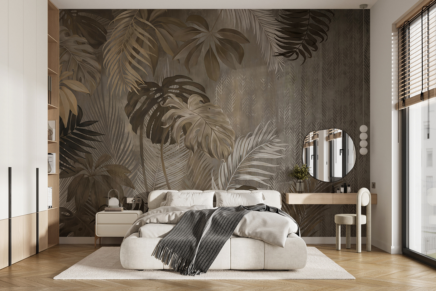 Premeňte nudnú stenu na tropický raj pomocou tejto nástennej maľby s elegantnými listami na nádherne pestrom pozadí. Predstavte si, že vstúpite do útulnej miestnosti a budete mať pocit, že ste sa zatúlali priamo do sviežej džungle – samozrejme, bez komárov. Zemité tóny vyžarujú pokojnú atmosféru a zabalia vás do hrejivého objatia. Ideálne pre tých, ktorí túžia po prírode, ale žijú ďaleko od nej. Priatelia sa vás môžu spýtať, či ste si nezobrali dovolenku do dažďového pralesa! Je to viac ako umenie, je to každodenný únik, spôsob, ako pozvať kúsok prírody bez toho, aby ste museli opustiť domov.