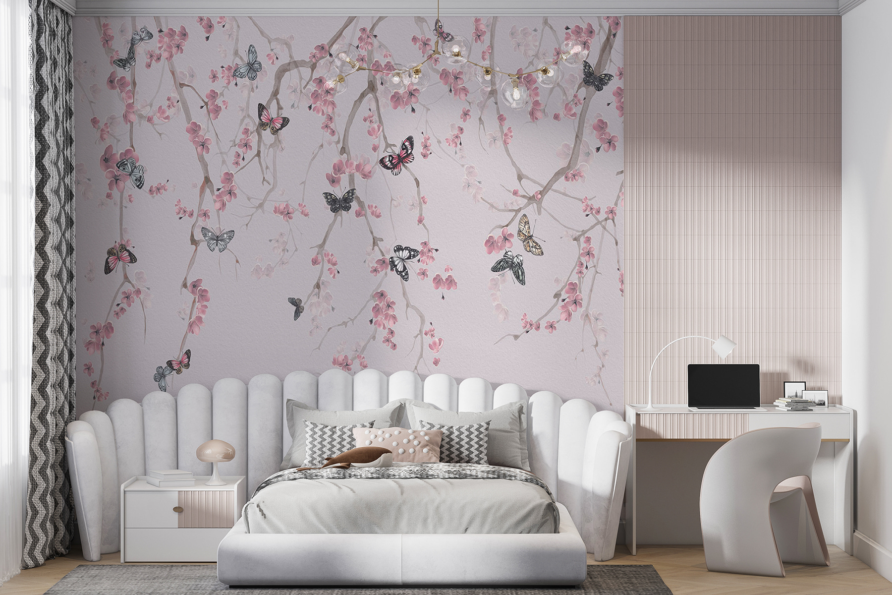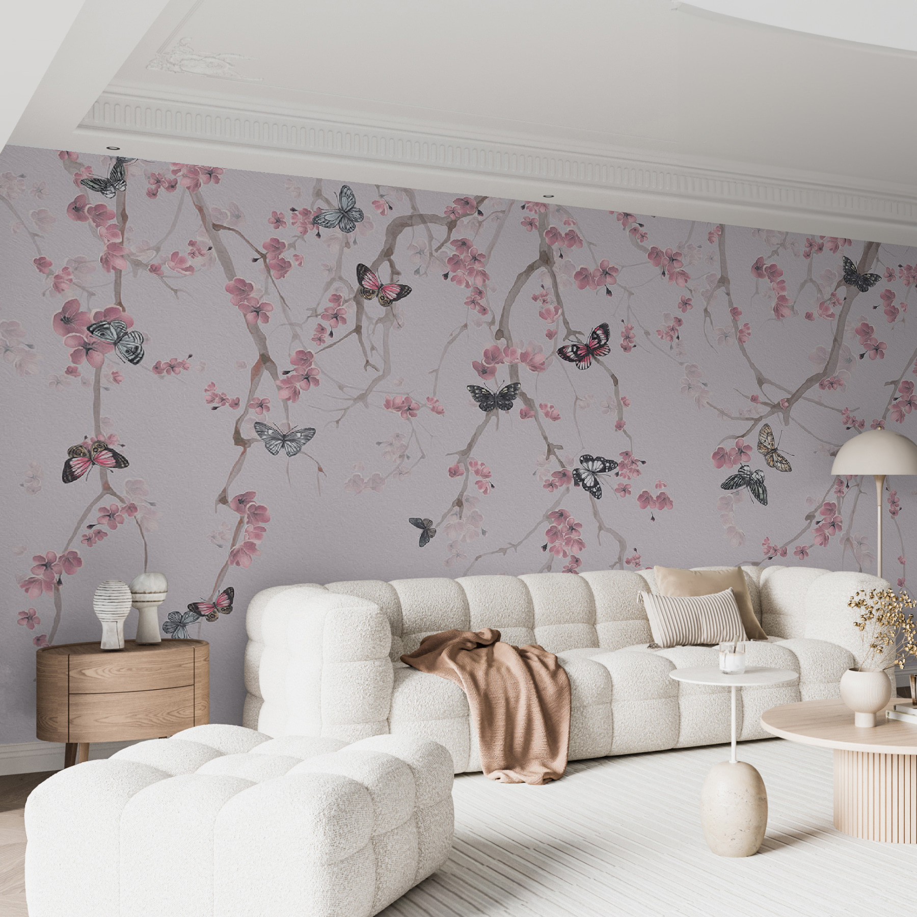 Predstavte si, že sa zobudíte s pokojnou motýlia záhradou priamo na stene – akoby vás príroda len tak prišla pozdraviť. Táto nástenná maľba “Motýľ na bielej ploche” bez námahy vnesie pokojnú atmosféru do každej miestnosti. Jemné vetvičky s nežnými ružovými kvetmi jemne kolískajú trepotajúce sa motýle a vytvárajú zasnený únik od každodenného zhonu. Táto nástenná maľba, ktorá sa dokonale hodí do tichého zákutia alebo aj do živej obývačky, šepká pokoj. Nie je to len dekorácia – je to zážitok, ktorý vám pripomenie, aby ste sa zastavili a vychutnali si jednoduché krásy života. Či už popíjate čaj alebo sa začítate do obľúbenej knihy, vďaka tejto nástennej maľbe sa budete cítiť ako vo svojom osobnom raji. Kto by nemal rád dotyk rozmarného kúzla na svojej stene?