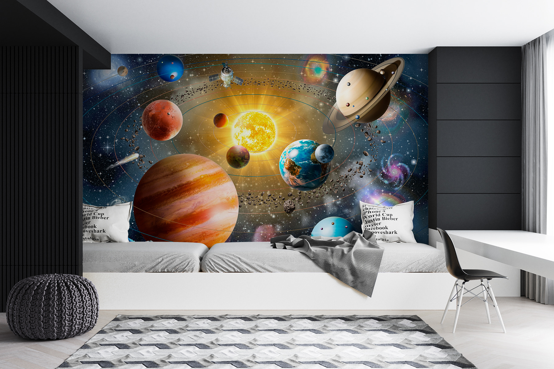 Nie je úžasné predstaviť si, že máte celý vesmír na dosah ruky? Táto nástenná maľba “Planéta Zem a Mesiac” vám umožní ponoriť sa do galaxie bez toho, aby ste potrebovali vesmírnu loď. Je to ako keby ste mali na stene mini planetárium – super, však? Ideálna pre deti, ktoré snívajú o vzdialených planétach, alebo pre tínedžerov, ktorí chcú mať vo svojej izbe extra kúzlo. Na vesmíre je niečo nadčasovo fascinujúce. Či už chcete vzbudiť zvedavosť, alebo len pridať epické pozadie, táto nástenná maľba vám pomôže. Pomyslite na to, ako sa vďaka nej môžete cítiť – ako astronaut vo svojom vlastnom dome! Predstavte si pohľad na víriace galaxie a žiariace planéty; je to takmer ako vesmírne objatie. Perfektne sa hodí do každej miestnosti, ktorá potrebuje štipku úžasu a kvapku nekonečna.