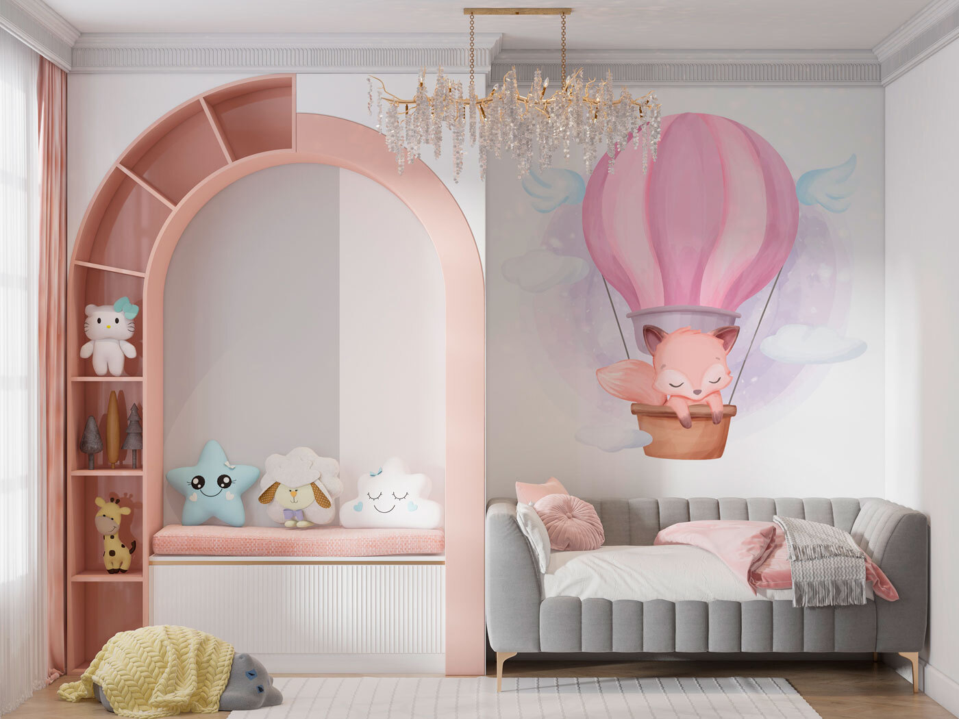 Predstavte si, že sa vznášate v ríši snov na nadýchanom obláčiku a prenáša vás tam ružový teplovzdušný balón! Táto fototapeta “Ružový teplovzdušný balón” je ideálna do detskej izby – či už pre vášho dobrodružného syna, alebo pre vašu malú snívajúcu dcéru. Vďaka zasneným pastelovým farbám a rozkošnej ospalej líške pôsobí táto fototapeta ako hrejivé objatie. Dodá každému priestoru ten správny nádych rozmarnosti a kúzla.