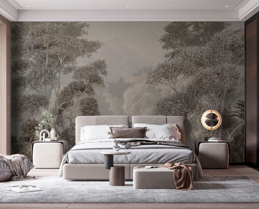Premeňte akúkoľvek miestnosť na pokojný útek s nástennou maľbou “Mlžný les s horami za ním”. Predstavte si, že vstúpite do pokojnej krajiny, kde sa jemná hmla ovíja okolo očarujúcich stromov a vzdialených vrcholov – ideálna na príjemné popoludnia alebo chvíle inšpirácie. Táto nástenná maľba šepká príbehy o prírode, vyvoláva spomienky na čerstvý vzduch a šumenie lístia. Či už sa nachádza v obývacej izbe, tichom čitateľskom kútiku, alebo dokonca v zasnenej spálni, vnesie do interiéru kúsok veľkej prírody. Zavrite oči a takmer budete počuť jemné šumenie lístia. Kto by nechcel utiecť do tohto pokojného kúska raja priamo u vás doma? Táto dokonale nenápadná nástenná maľba nabáda k pokojným vibráciám a ponúka možnosť pokojne sa nadýchnuť uprostred životného zhonu.