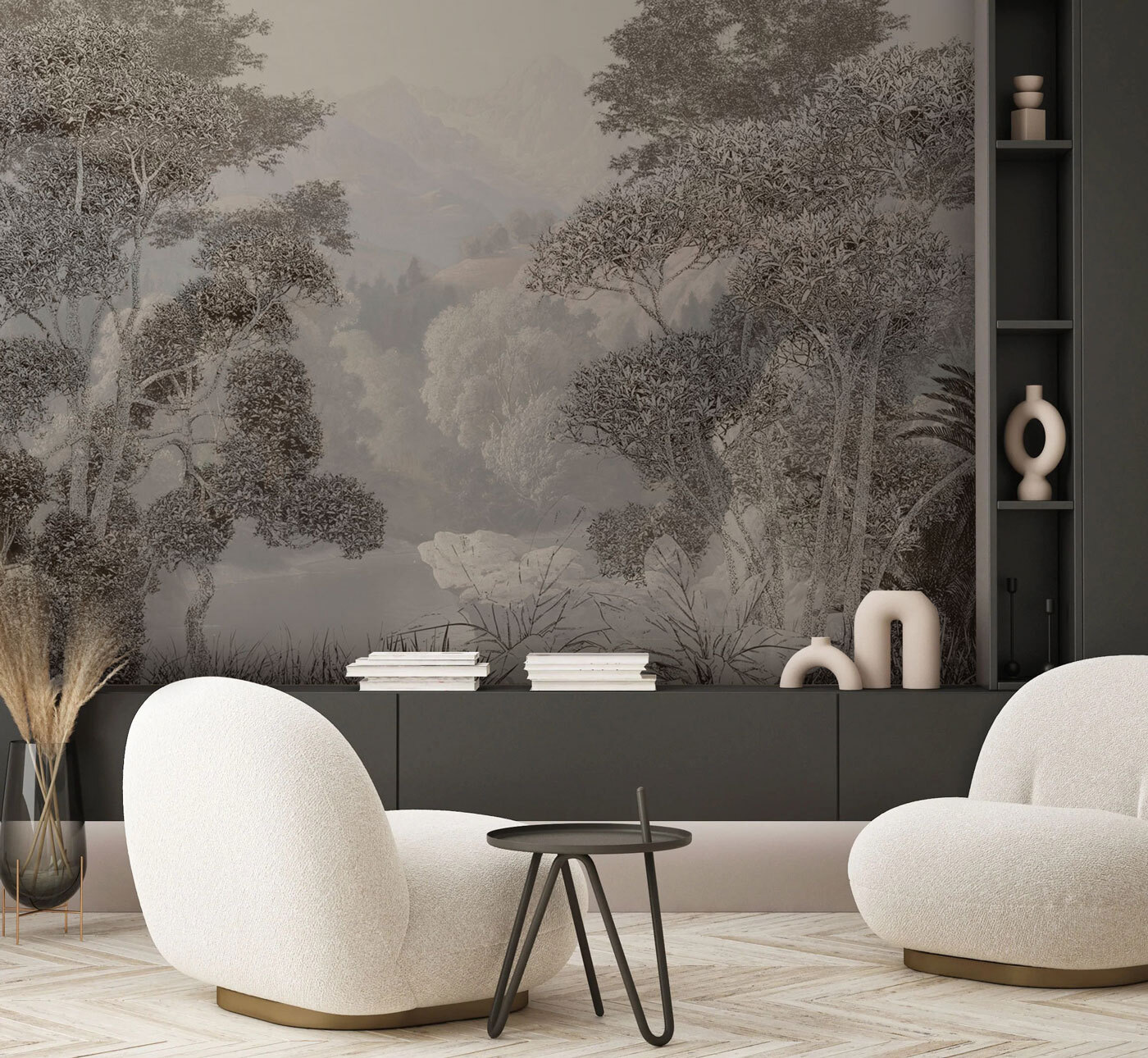 Premeňte akúkoľvek miestnosť na pokojný útek s nástennou maľbou “Mlžný les s horami za ním”. Predstavte si, že vstúpite do pokojnej krajiny, kde sa jemná hmla ovíja okolo očarujúcich stromov a vzdialených vrcholov – ideálna na príjemné popoludnia alebo chvíle inšpirácie. Táto nástenná maľba šepká príbehy o prírode, vyvoláva spomienky na čerstvý vzduch a šumenie lístia. Či už sa nachádza v obývacej izbe, tichom čitateľskom kútiku, alebo dokonca v zasnenej spálni, vnesie do interiéru kúsok veľkej prírody. Zavrite oči a takmer budete počuť jemné šumenie lístia. Kto by nechcel utiecť do tohto pokojného kúska raja priamo u vás doma? Táto dokonale nenápadná nástenná maľba nabáda k pokojným vibráciám a ponúka možnosť pokojne sa nadýchnuť uprostred životného zhonu.