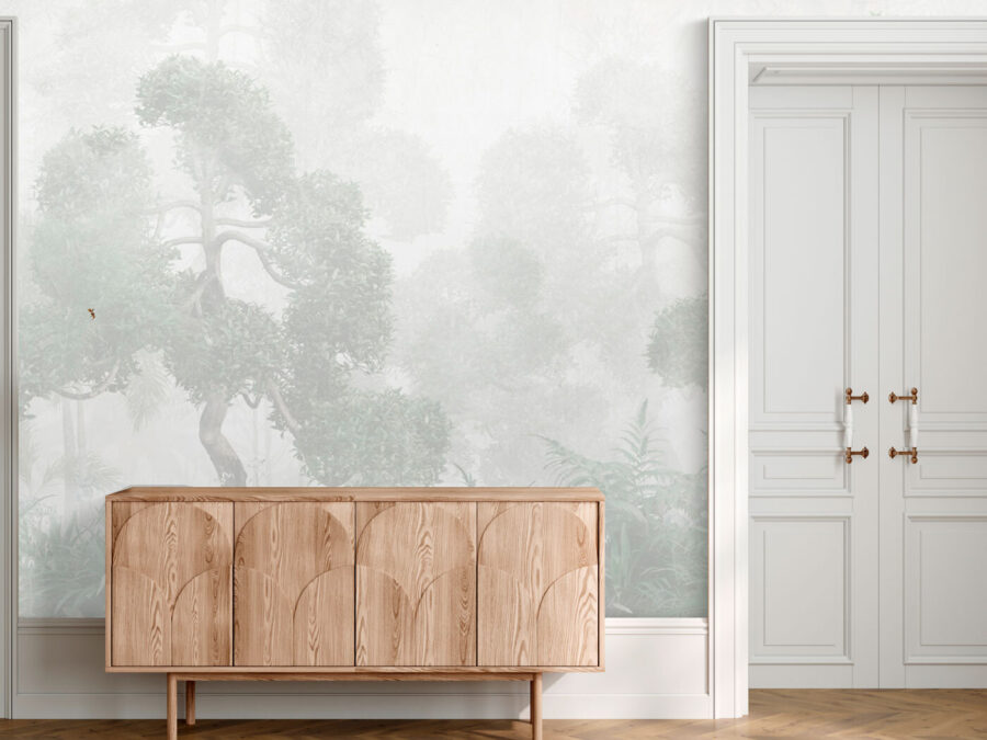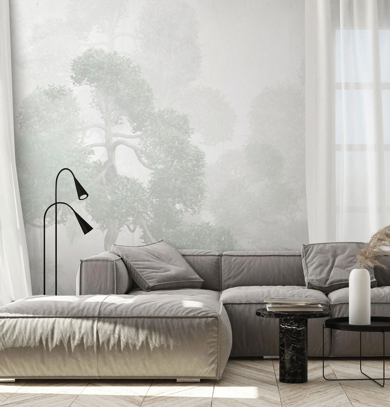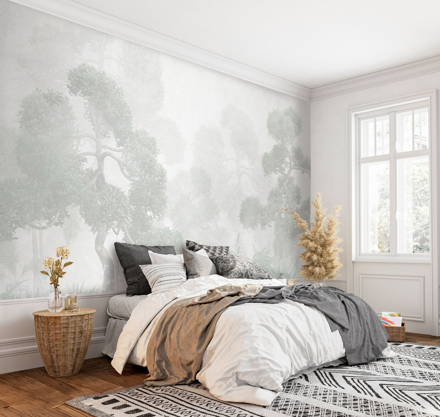 Premeňte svoj priestor na pokojný útek s touto nástennou maľbou hmlistého lesa, rastlín a papradia. Predstavte si, ako sa túlate v jemnom opare a vzduchom sa šíria zemité vône prírody. Je to dokonalá kulisa na príjemné rozhovory pri káve alebo pokojný úkryt na čítanie knihy, do ktorej ste sa chceli ponoriť. Táto nástenná maľba je ideálna do každej miestnosti, ktorá túži po nádychu pokoja, a prináša upokojujúce prostredie, ktoré sa zdá byť nedotknuté časom. Spojte ju s mäkkým osvetlením a pohodlným kreslom a máte doma svoje vlastné tajné útočisko.