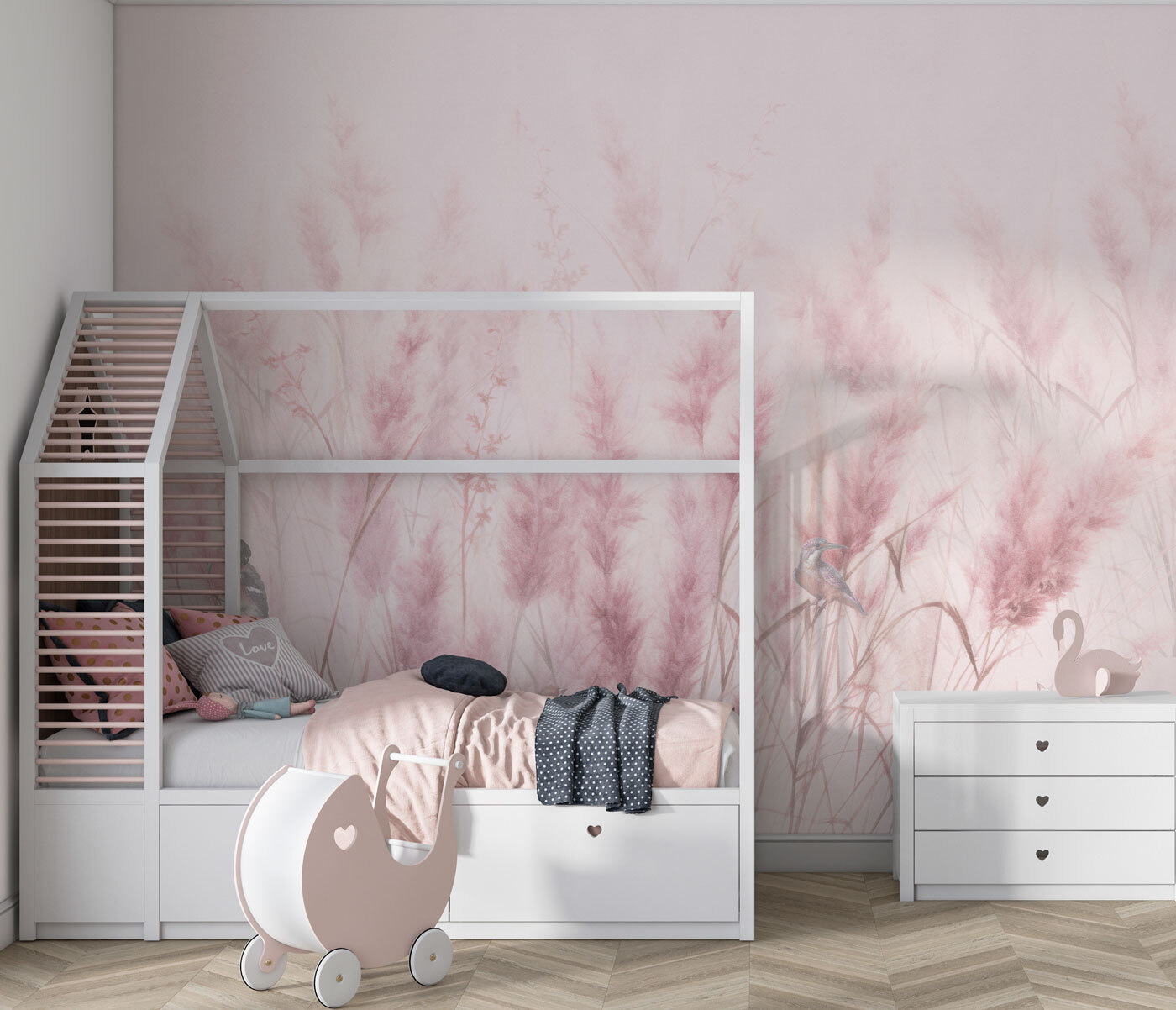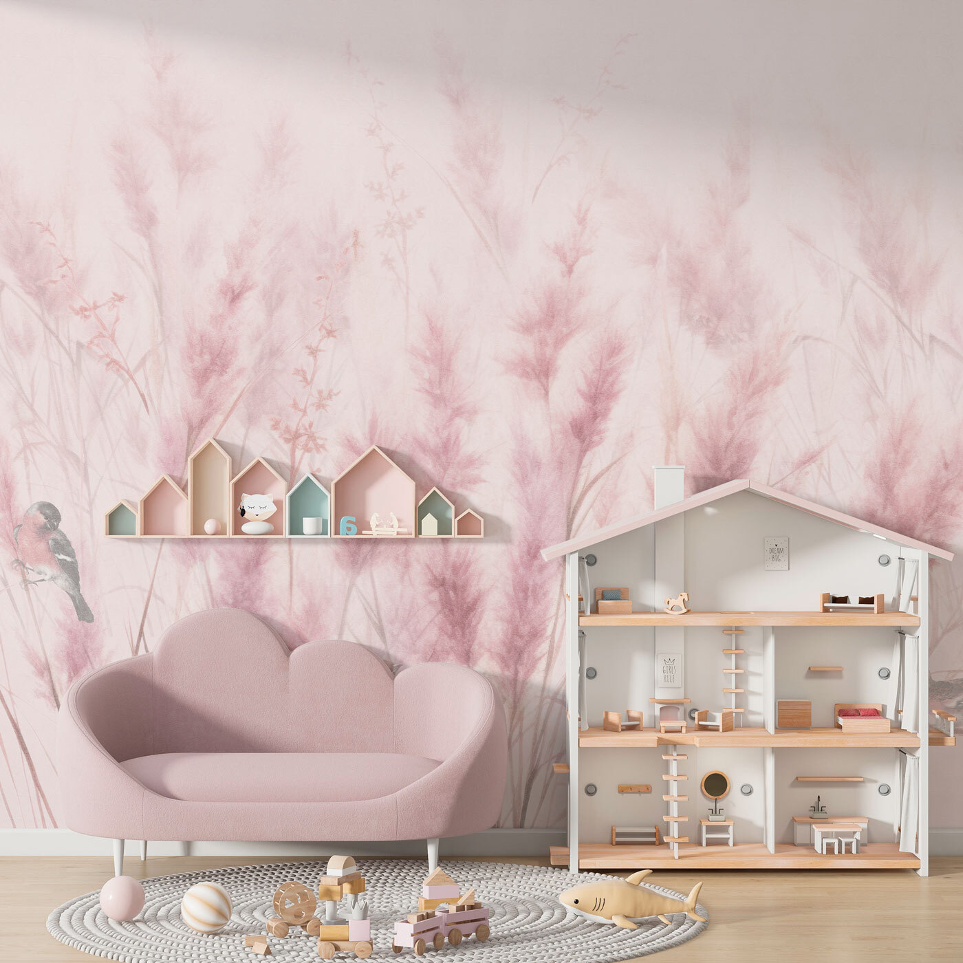 Predstavte si to na stene – jemne sa kolíše ružová tráva a okolo nej poletujú očarujúce vtáčiky. Je to ako preniesť pokojnú lúku za úsvitu priamo do vašej izby! Táto fototapeta “Vtáčiky medzi jemnou ružovou trávou” je ako stvorená do detskej izby, dodá im upokojujúcu atmosféru a podnieti ich malú predstavivosť. Ale úprimne, bude vyzerať úžasne kdekoľvek, kde chcete dotyk pokoja a prírody – napríklad aj vo vašom čitateľskom kútiku alebo kancelárii.