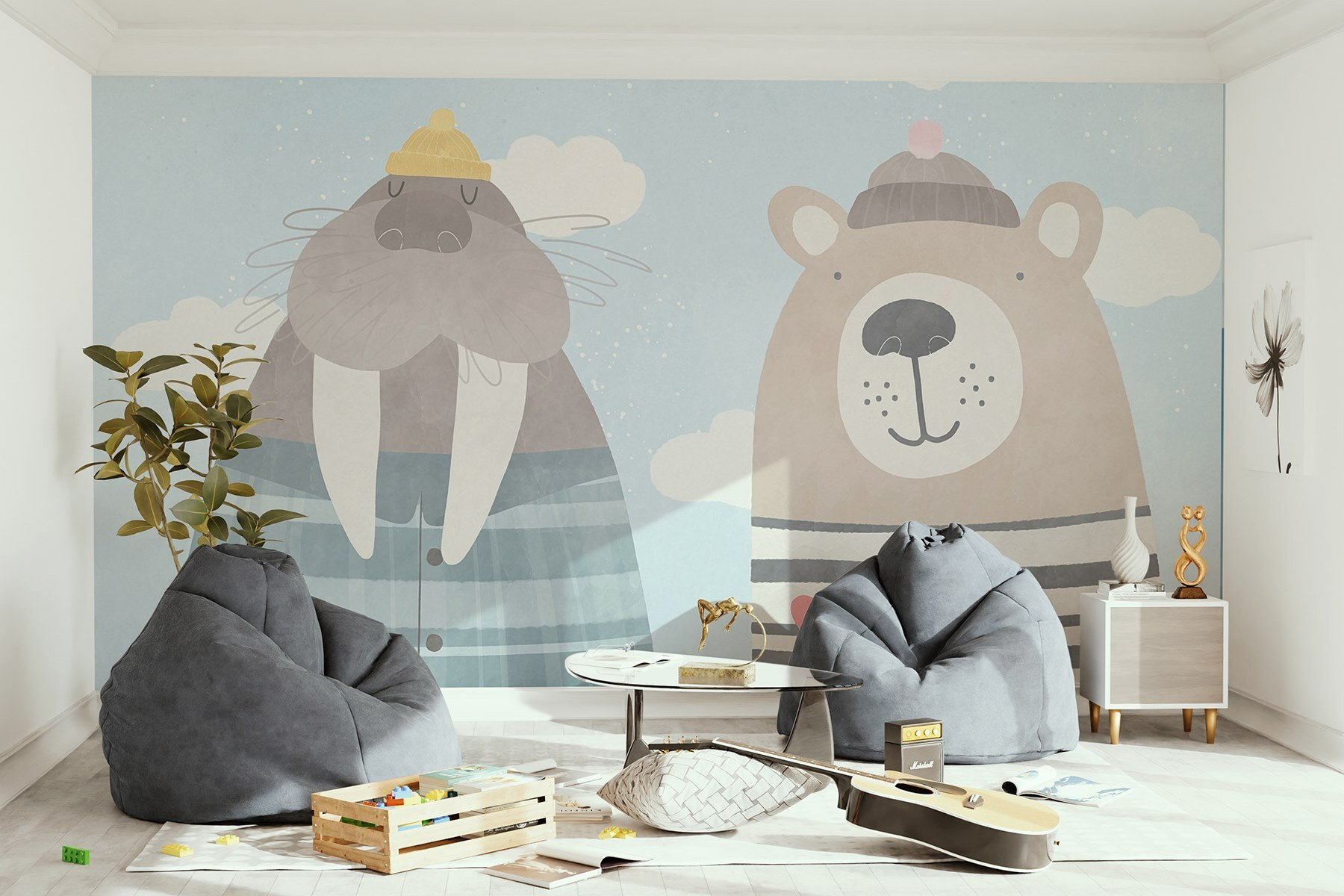 Pozrite si túto nádhernú nástennú maľbu! Je na nej očarujúci mrož v klobúku a šortkách a je ako stvorená na to, aby ste do detskej izby vniesli trochu zábavy a rozmarnosti. Vidíte to? Predstavte si, ako sa deťom rozžiaria oči, keď zbadajú svojho nového mroža, ako sa poflakuje s priateľskými vtákmi. Je to ako mini dobrodružstvo na stene – ideálne na rozvíjanie fantázie počas hry alebo rozprávok pred spaním. Vďaka jemným farbám sa navyše ľahko hodí k takmer akémukoľvek interiéru. Sladké, však? S touto fototapetou sa každý deň bude zdať ako jemný slnečný deň pri mori.