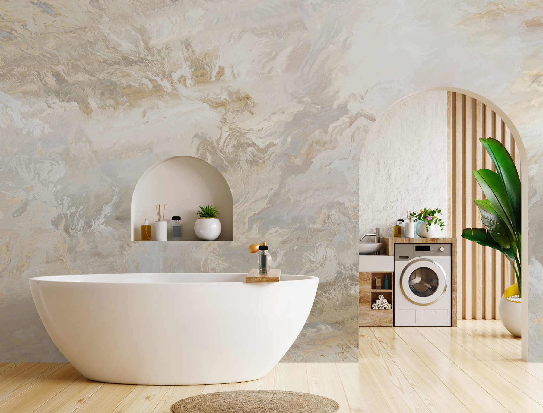 Premeňte každú miestnosť pomocou tejto elegantnej vírivej mramorovej nástennej maľby. Jej jemné tóny a splývavé vzory vytvárajú upokojujúce útočisko priamo u vás doma. Predstavte si, že vojdete do svojho priestoru a okamžite sa budete cítiť uvoľnene, akoby ste popíjali latte v elegantnej kaviarni, a nie hľadeli na obyčajnú stenu. Táto nástenná maľba, ideálna do obývačky alebo tichého zákutia, nabáda k nekonečnému snívaniu. Je to, akoby sa umenie a dekorácia spojili a usporiadali u vás doma krásnu párty! Jednoduché odlepenie a nalepenie navyše znamená, že svoju premenu steny budete obdivovať okamžite – žiadne špinavé lepidlo. Kto by povedal, že zmena atmosféry môže byť taká jednoduchá?