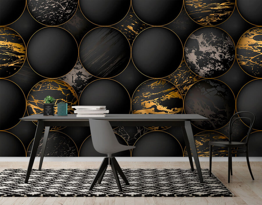 Pomocou tejto nástennej maľby s čiernymi guľami a výraznými mramorovými vzormi premeníte obyčajnú stenu na pútavé dielo. Predstavte si to: útulná obývacia izba plná smiechu a hostia obdivujúci cool dizajn na stene. Má to modernú atmosféru s nádychom dramatického vkusu, ktorý dokáže úplne navodiť náladu. Možno sledujete nový seriál a vaše pozadie len zvýši estetickú hru. Tieto odvážne gule vytvárajú pocit hĺbky, vďaka čomu sa každá miestnosť zdá byť väčšia a živšia. Ideálne pre tých, ktorí chcú do svojho priestoru vniesť trochu osobnosti a údernosti. Prečo sa uspokojiť s nudou, keď vaše steny môžu rozprávať príbeh?