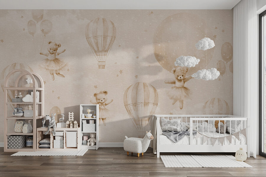 Premeňte akýkoľvek priestor na rozmarnú krajinu zázrakov s nástennou maľbou “Medvedík v tutu”. Predstavte si to: medvedíky sa krútia vo svojich baletných kostýmoch a vznášajú sa uprostred očarujúcich teplovzdušných balónov. Je to ako krajina snov, kde fantázia nepozná hranice. Perfektne sa hodí do detských izieb alebo priestorov na hranie a dodáva im nádych kúzla a dobrodružstva. Len si predstavte tie úsmevy a chichotanie, keď si detičky ukazujú na svojich tancujúcich plyšových kamarátov. Táto nástenná maľba inšpiruje k radosti a tvorivosti a robí každý deň o niečo svetlejším. Tak prečo nenechať svoje steny rozprávať príbeh?