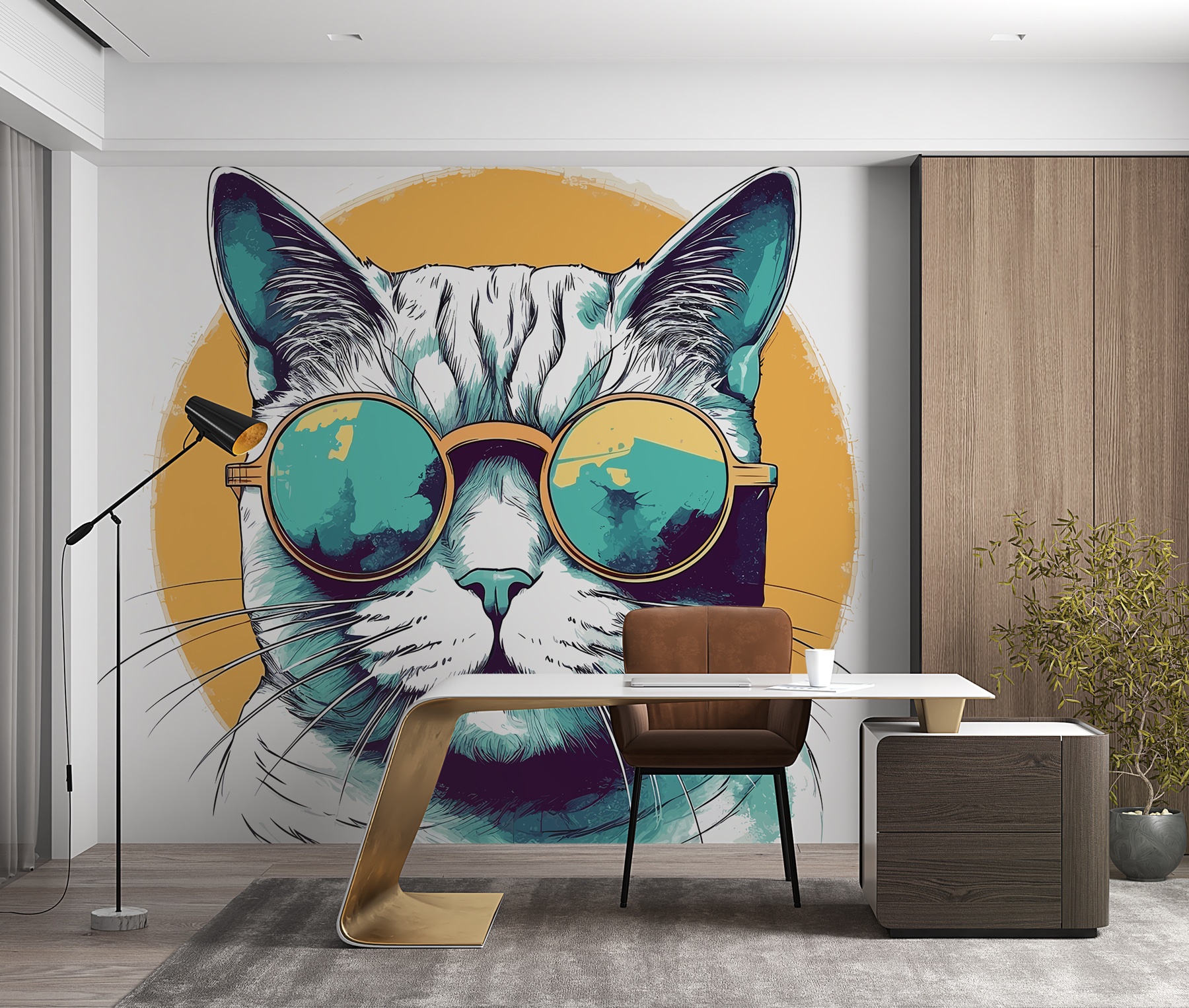 Pripravte sa na stretnutie s najúžasnejšou mačkou v meste! Táto fototapeta predstavuje štýlovú mačku s mierne nadrozmernými slnečnými okuliarmi, ktorá je ideálna na to, aby vniesla do každej miestnosti nádych rozmarnosti a osobnosti. Predstavte si, že vojdete do svojho priestoru a privíta vás táto očarujúca mačka – je to ako mať malého kamaráta, ktorý vám pripomína, aby ste brali život trochu menej vážne. Táto nástenná maľba je ideálna do detských izieb alebo jednoducho pre každého, kto má rád jedinečné dekorácie, a dodáva im šmrnc zábavy a farieb. Je to kus, ktorý vyvoláva rozhovory a úsmevy – kto by nechcel mať takúto atmosféru? Je ideálny ako hravý doplnok obývacej izby alebo veselý doplnok do detskej izby a môže inšpirovať k naozaj hlúpym príbehom a smiechu.