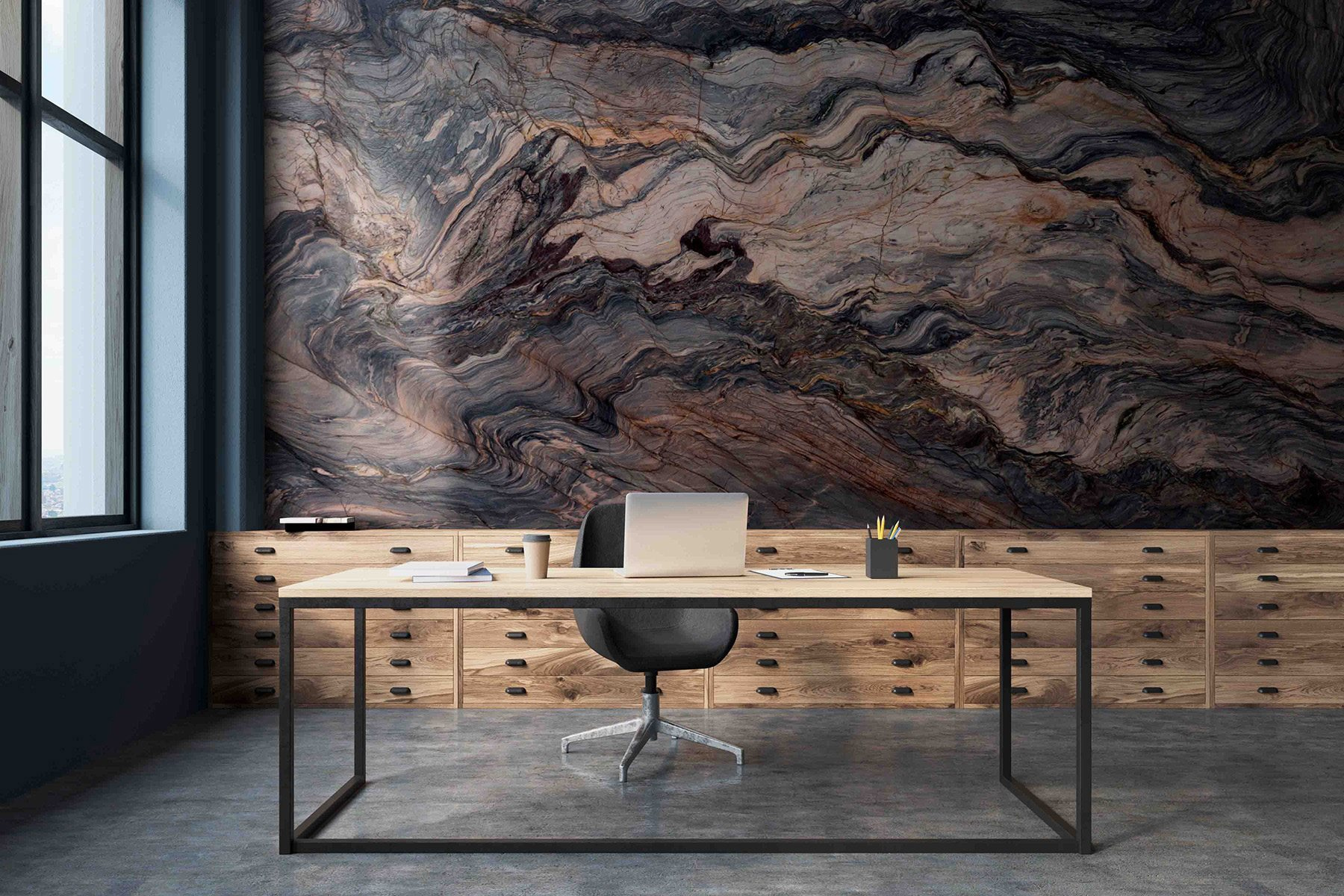 Premeňte svoj priestor pomocou nástennej maľby “Víriace vzory prírodnej krásy”. Tento úžasný kúsok zachytáva podstatu bohatých textúr a farieb mramoru, ktoré sa víria ako jemný tanec. Predstavte si, že vstúpite do miestnosti a okamžite sa budete cítiť zahalení v objatí tepla a elegancie. Je to ako mať na stene kúsok prírody, ktorý vytvára prívetivú atmosféru vyvolávajúcu radosť.