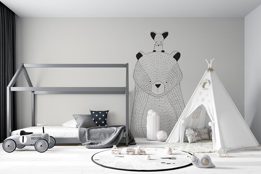 Táto potlač je rovnako roztomilá ako upokojujúca, s jednoduchými líniami, ktoré jej dodávajú moderný nádych a zároveň zachovávajú milý a prístupný vzhľad. Skvele sa hodí do detských izieb, izieb batoliat a všetkých priestorov, kde chcete vniesť trochu kúzla. Jemný výraz medveďa pôsobí ako teplé, útulné objatie v podobe nástennej maľby.